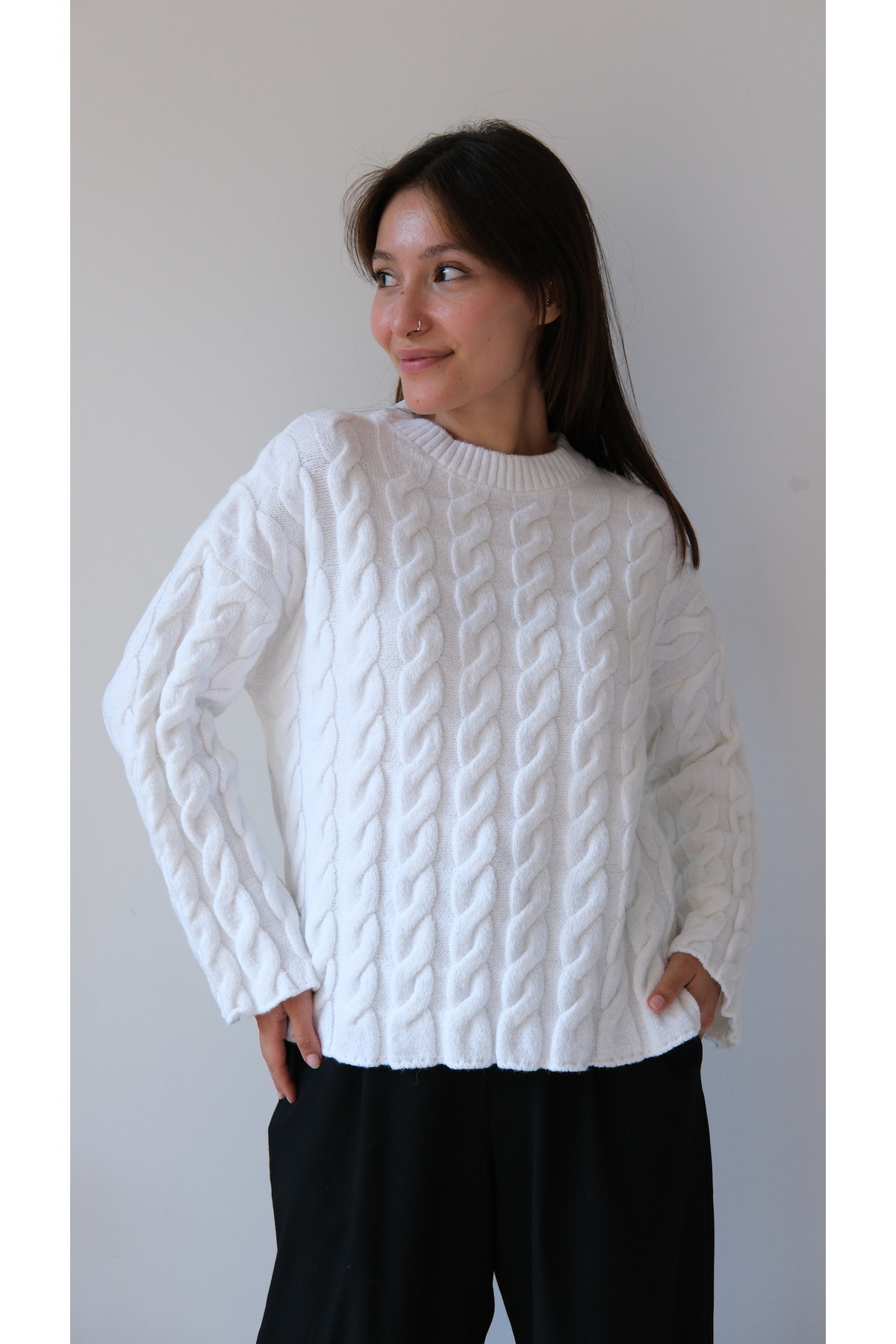 Una Fiaba -Beyaz Oversize Yumuşak Dokulu Saç Örgü Bisiklet Yaka Kadın Kazak Una Fiaba -Beyaz Oversize Yumuşak Dokulu Saç Örgü Bisiklet Yaka Kadın Kazak 242595 L