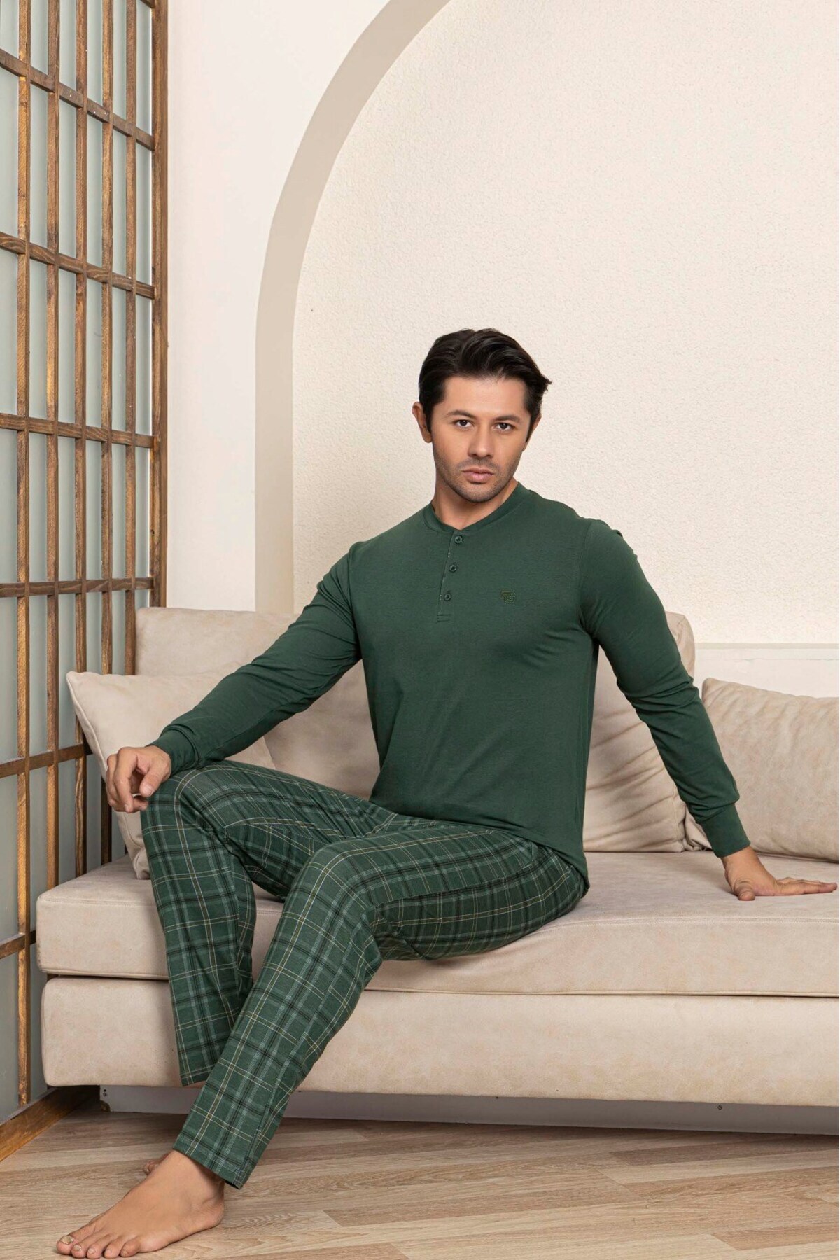 Erkek Yeşil 3 Düğmeli Ekose Desen Pamuk Likra Mevsimlik Uzun Kol Manşetli Cepli Pijama Takımı Erkek Yeşil 3 Düğmeli Ekose Desen Pamuk Likra Mevsimlik Uzun Kol Manşetli Cepli Pijama Takımı PRA-13074599-990810 XL