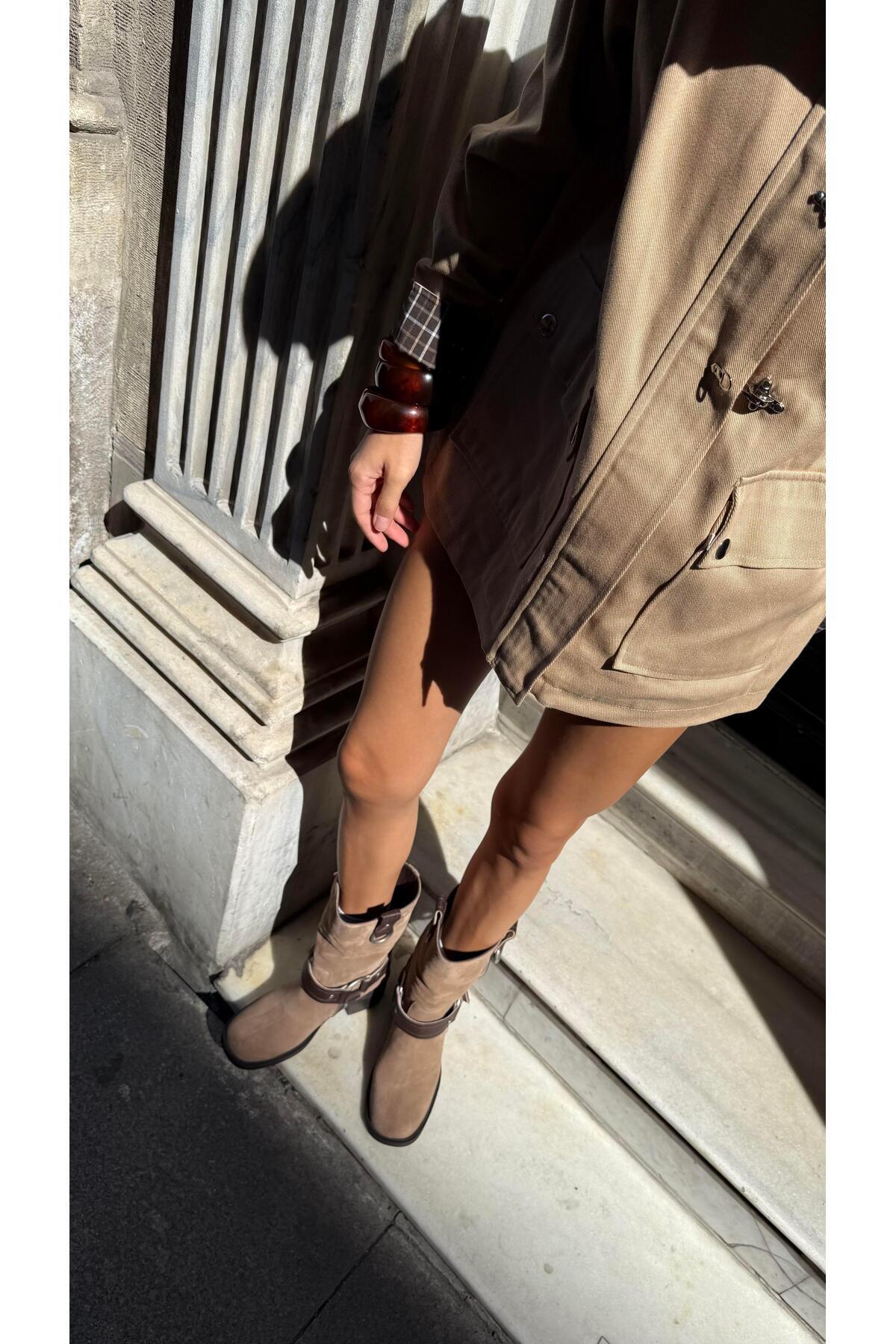Kadın Hakiki Deri Binici Model Bot Vizon Kahve Kadın Hakiki Deri Binici Model Bot Vizon Kahve ES-2622 40