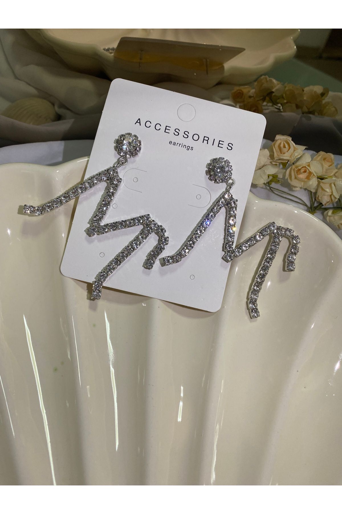 Beyaz ve mor taşlı sallanan abiye Gold küpe Beyaz ve mor taşlı sallanan abiye Gold küpe sdafgds تک سایز