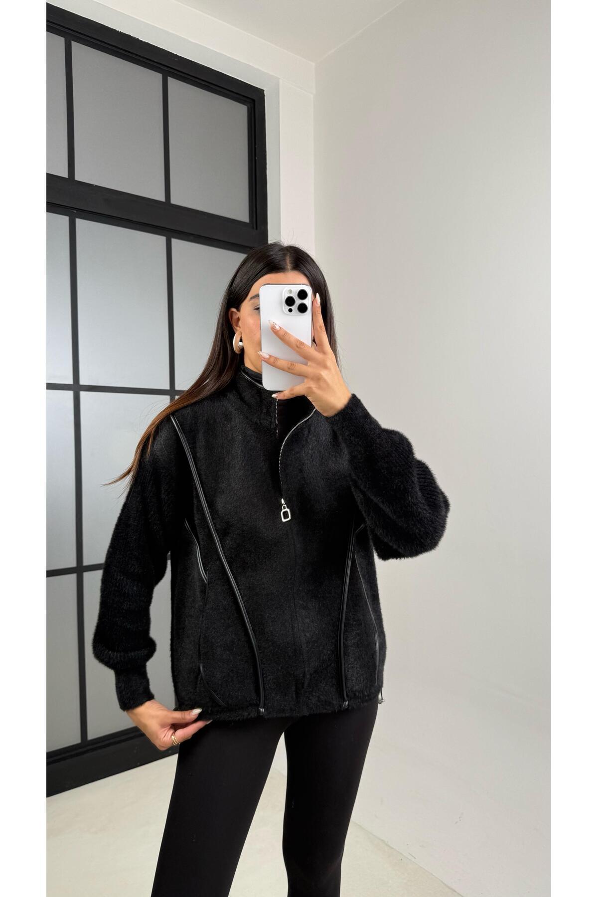 Siyah Deri Şeritli Dik Yaka Premium Ceket GAUS-00148 Siyah Deri Şeritli Dik Yaka Premium Ceket GAUS-00148 Standart
