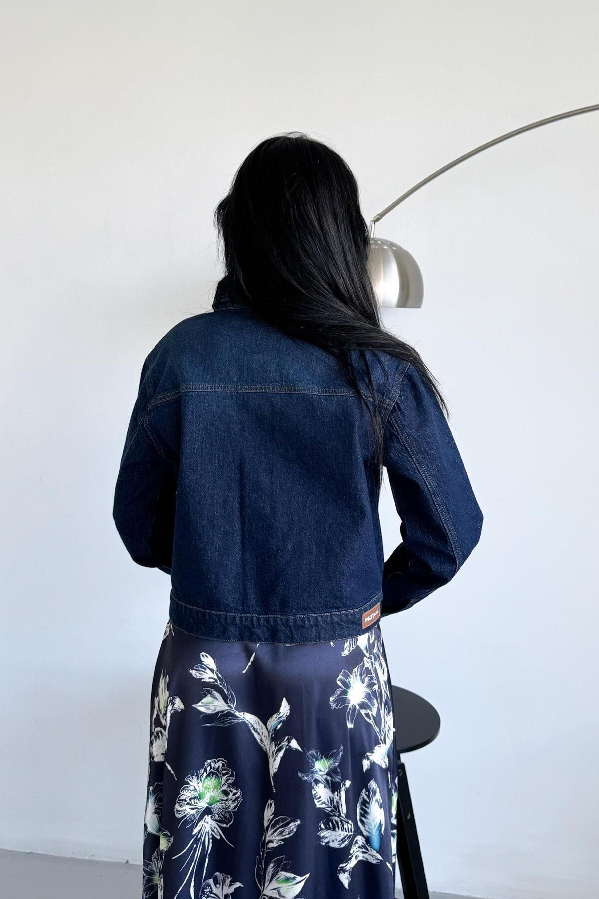Kadın Koyu Mavi Jean Denim Regular Kalıp Cepli Düğmeli Kot Ceket DİANA-5003 Kadın Koyu Mavi Jean Denim Regular Kalıp Cepli Düğmeli Kot Ceket DİANA-5003 2XL