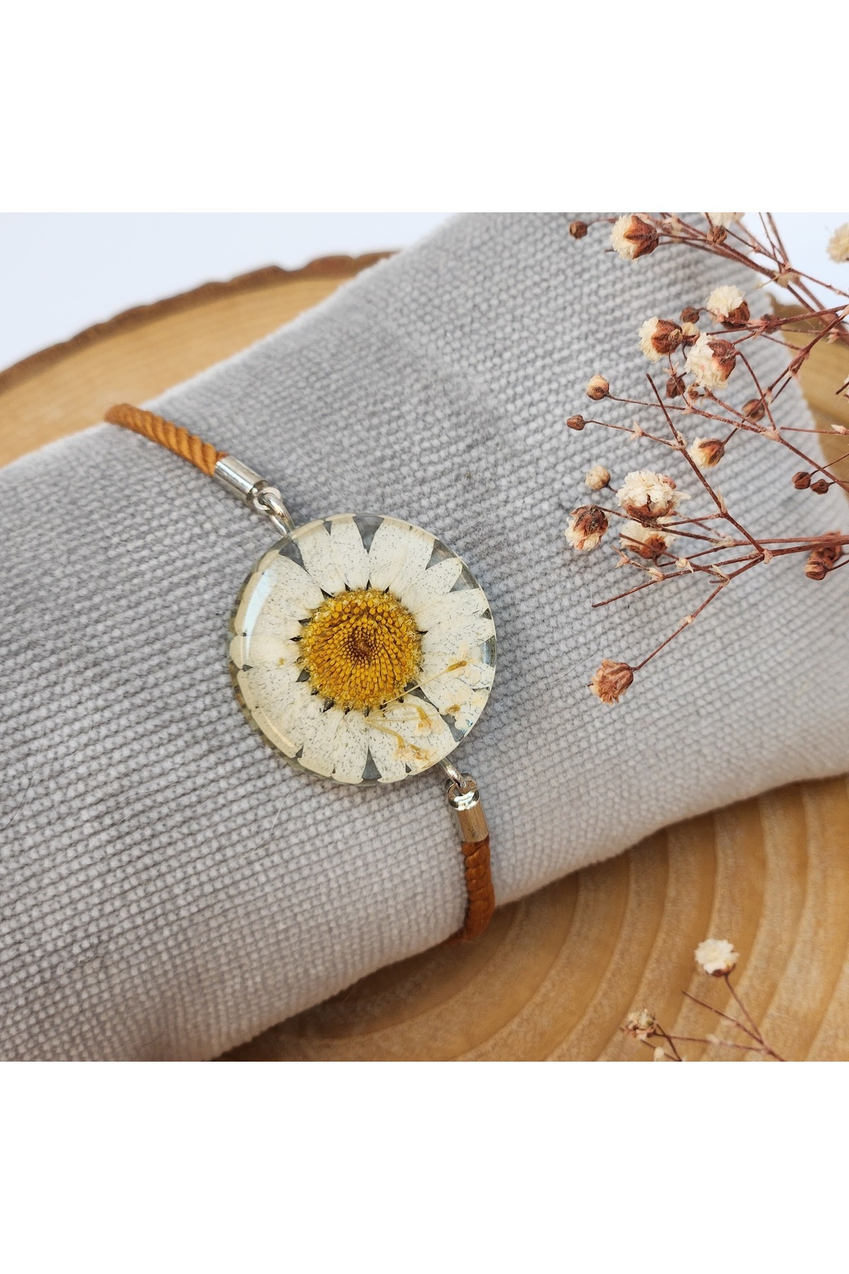 Gerçek Çiçek Papatya Epoksi Reçine Bileklik Gerçek Çiçek Papatya Epoksi Reçine Bileklik Ret009 تک سایز