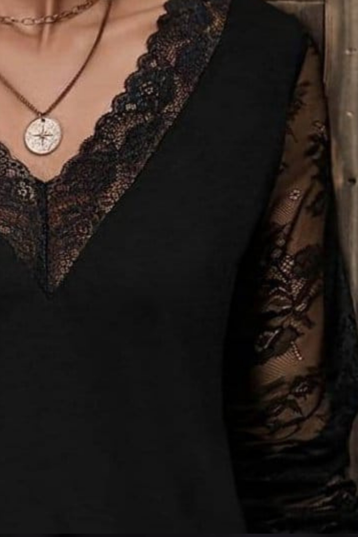 Kadın V Yaka Dantel Detaylı Uzun Kollu Viskon Bluz Kadın V Yaka Dantel Detaylı Uzun Kollu Viskon Bluz ROT-72320-MN 2XL-3XL