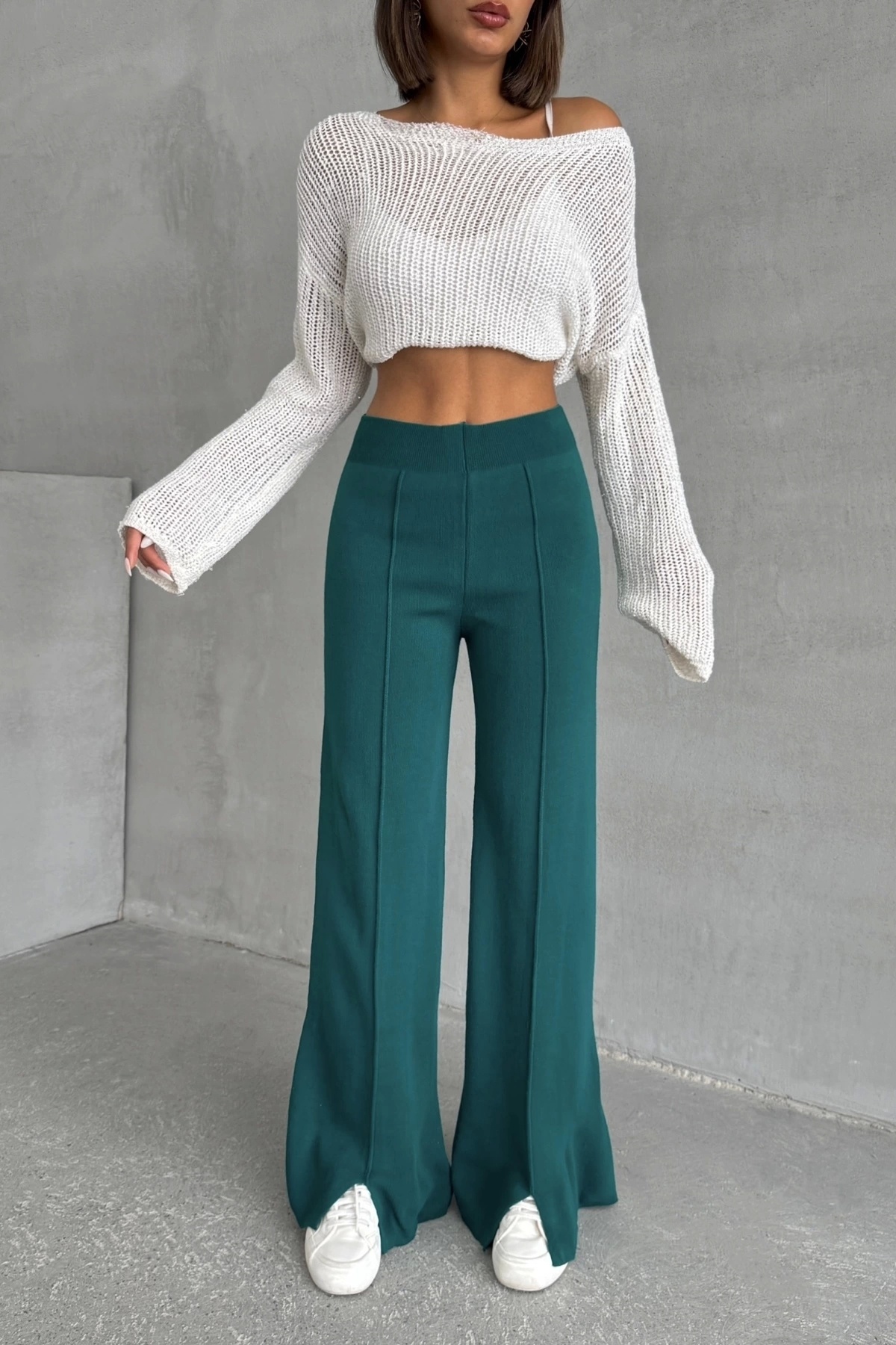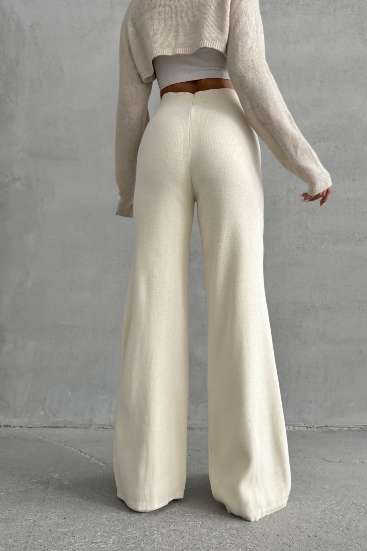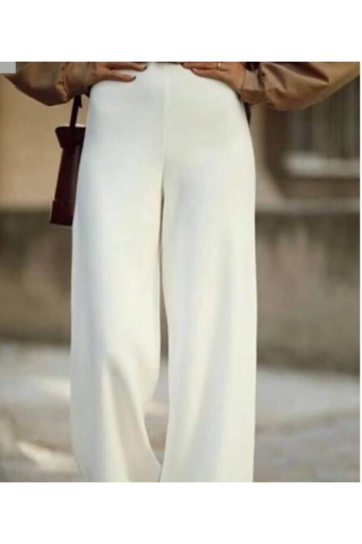 Kadın Bej Yüksek Bel Şık Şerit Detaylı Geniş Paça Triko pantolon Kadın Bej Yüksek Bel Şık Şerit Detaylı Geniş Paça Triko pantolon LSN0225 Standart