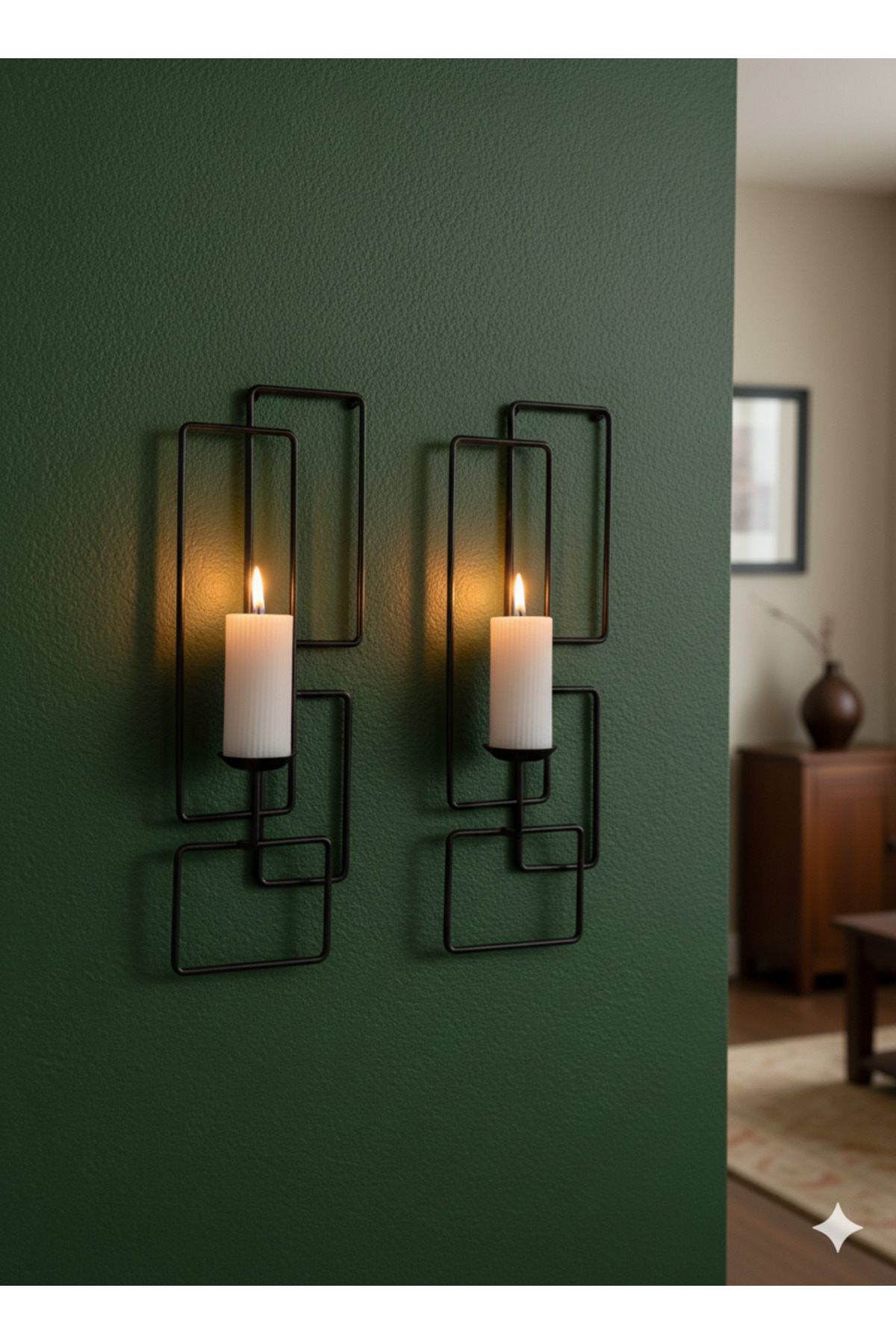 İkili Geometrik Tasarımlı Metal Duvar Mumluk Şamdan İkili Geometrik Tasarımlı Metal Duvar Mumluk Şamdan BK83234 تک سایز
