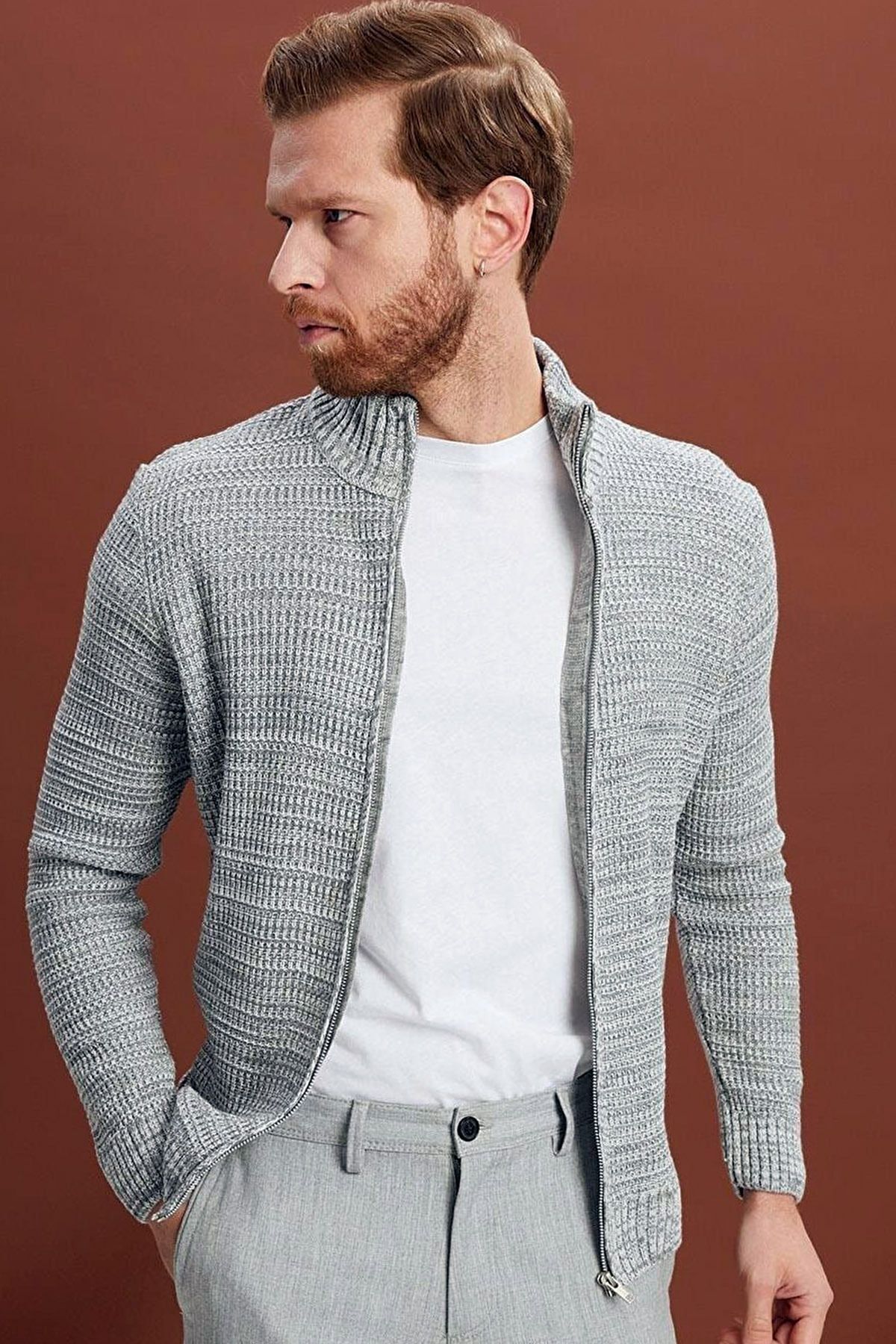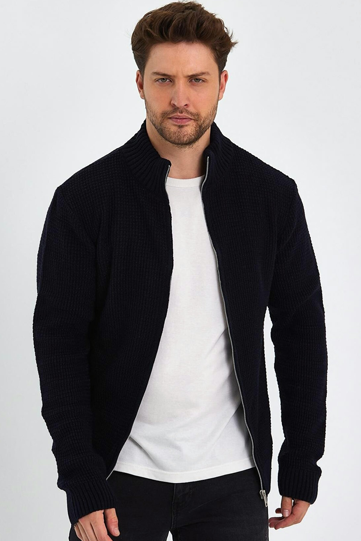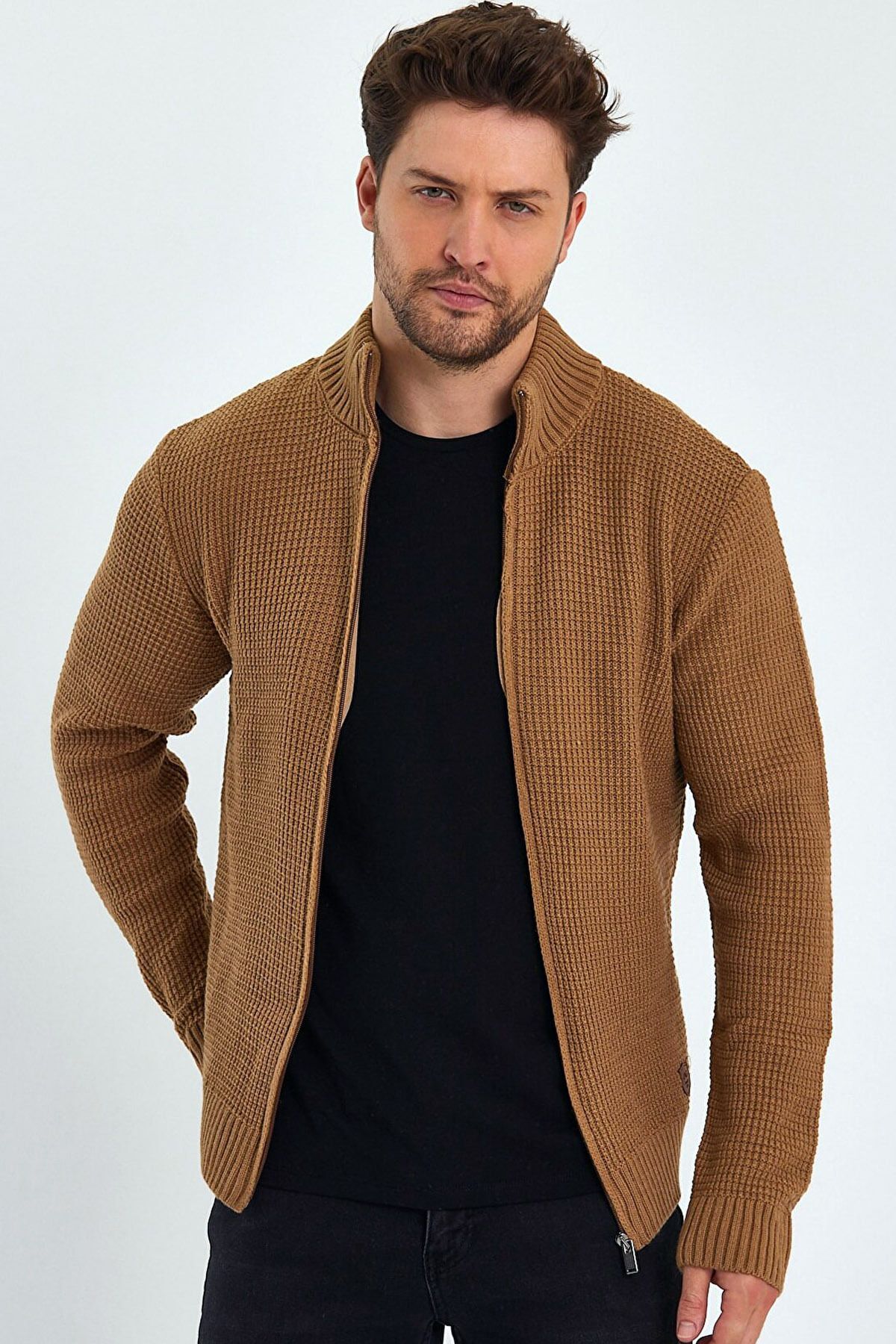 Desenli Slim Fit Fermuarlı Yarım Balıkçı Yaka Erkek Triko Kazak Ekru - 11569.25K Desenli Slim Fit Fermuarlı Yarım Balıkçı Yaka Erkek Triko Kazak Ekru - 11569.25K 2XL