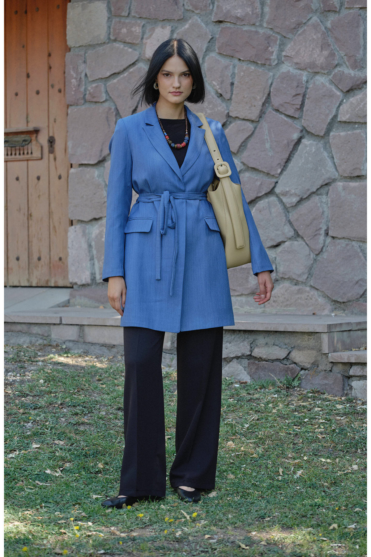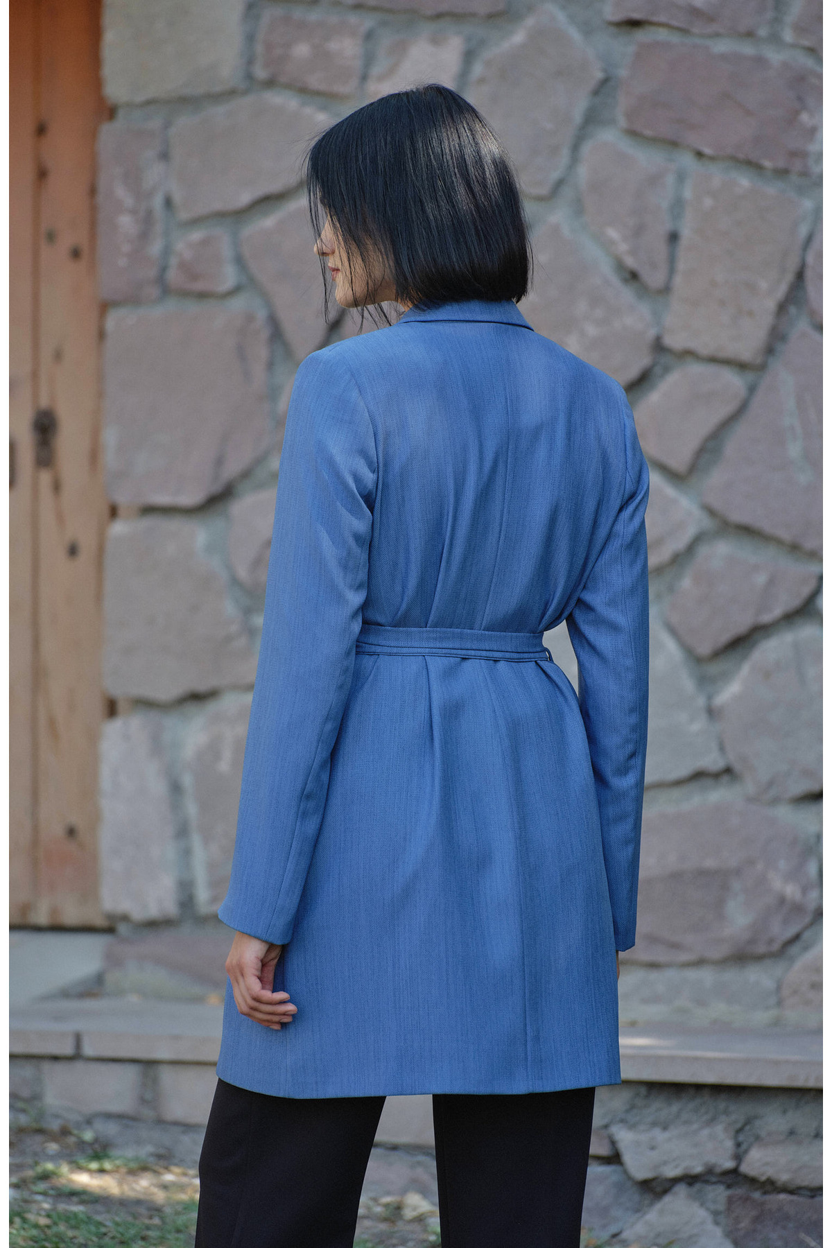 Bağlamalı İndigo Poliviskon Ceket Bağlamalı İndigo Poliviskon Ceket FA2025SS-E5055 XL
