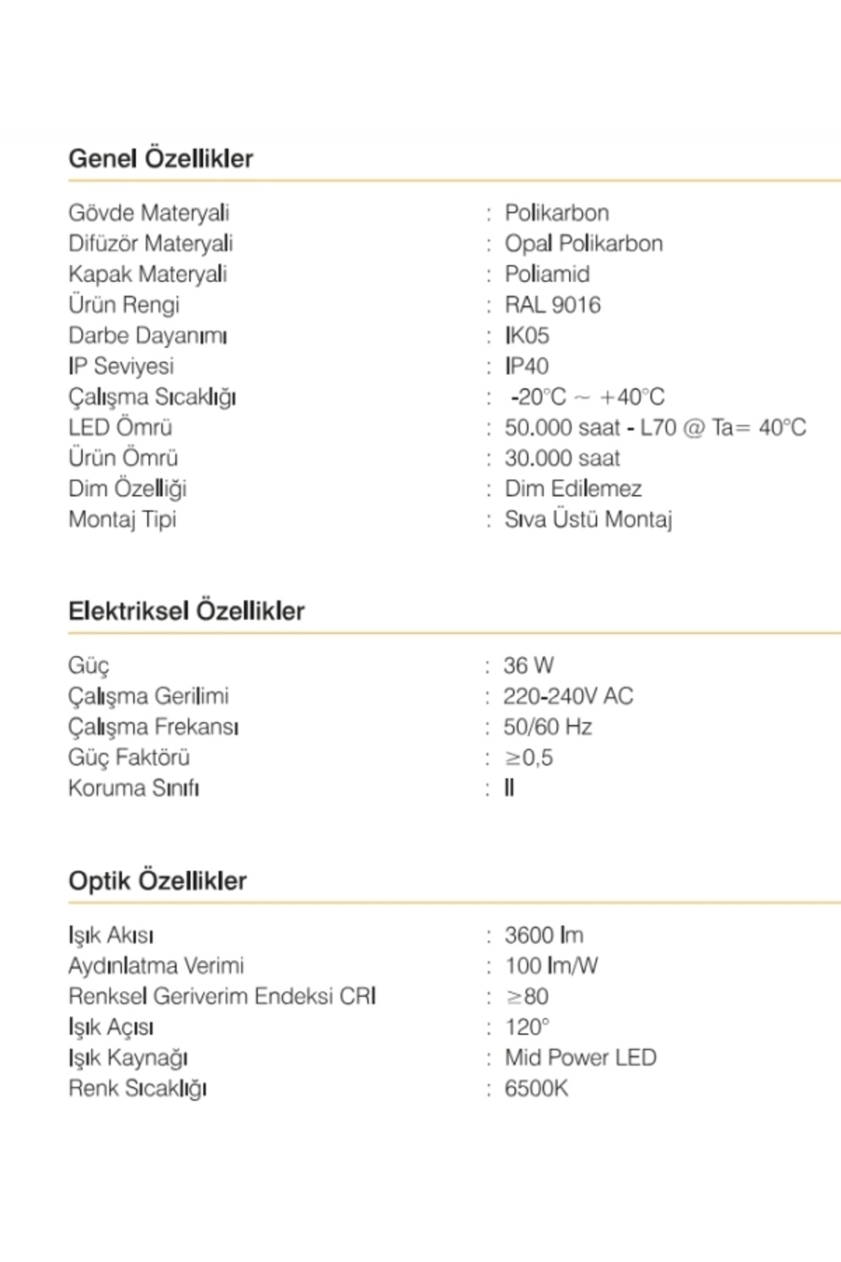 120cm 36W Led Bant Armatür BEYAZ 6500K IP40 120cm 36W Led Bant Armatür BEYAZ 6500K IP40 2907 تک سایز