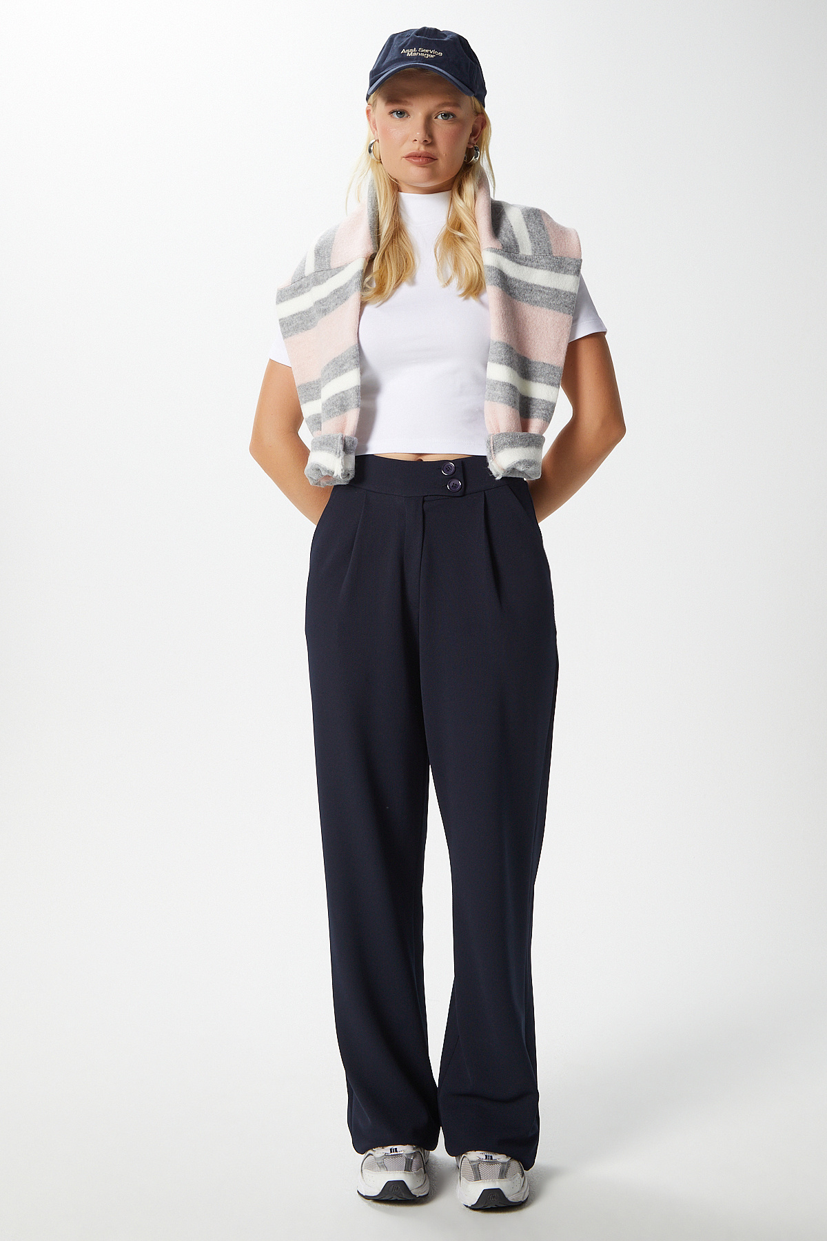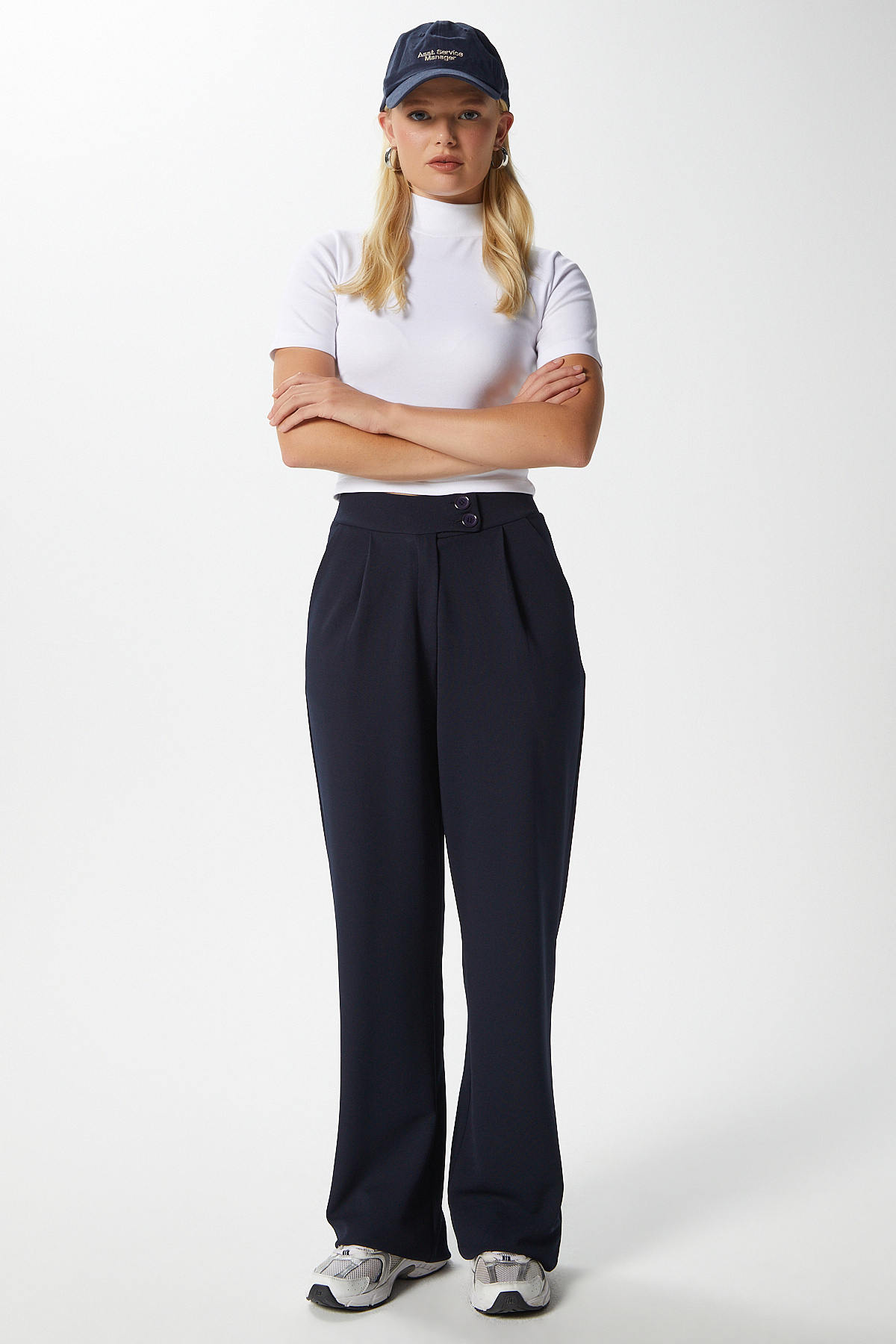 Likra Serisi Move Çift Düğmeli Esnek Lacivert Palazzo Pantolon Likra Serisi Move Çift Düğmeli Esnek Lacivert Palazzo Pantolon 1559 50