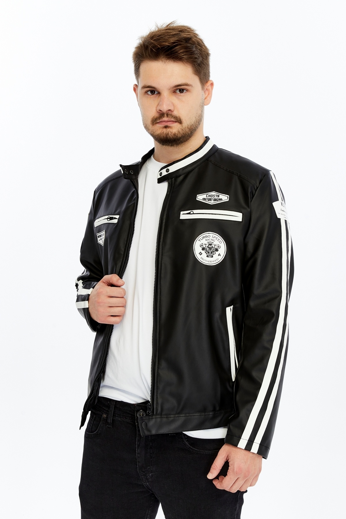 Erkek Siyah Beyaz Şeritli Racing Tarz Motorcu Mont Arma Baskı Detaylı Cepli Fermuarlı Yarışçı Ceket Erkek Siyah Beyaz Şeritli Racing Tarz Motorcu Mont Arma Baskı Detaylı Cepli Fermuarlı Yarışçı Ceket 1001-E XL