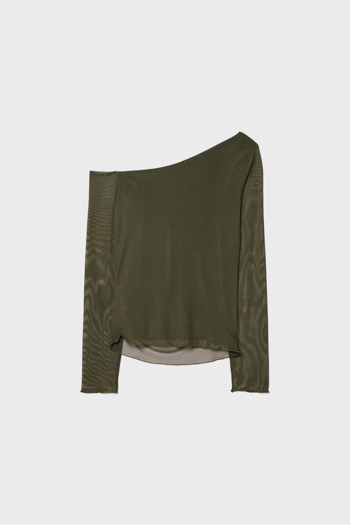 Asimetrik tül tişört Asimetrik tül tişört 06683654 XL