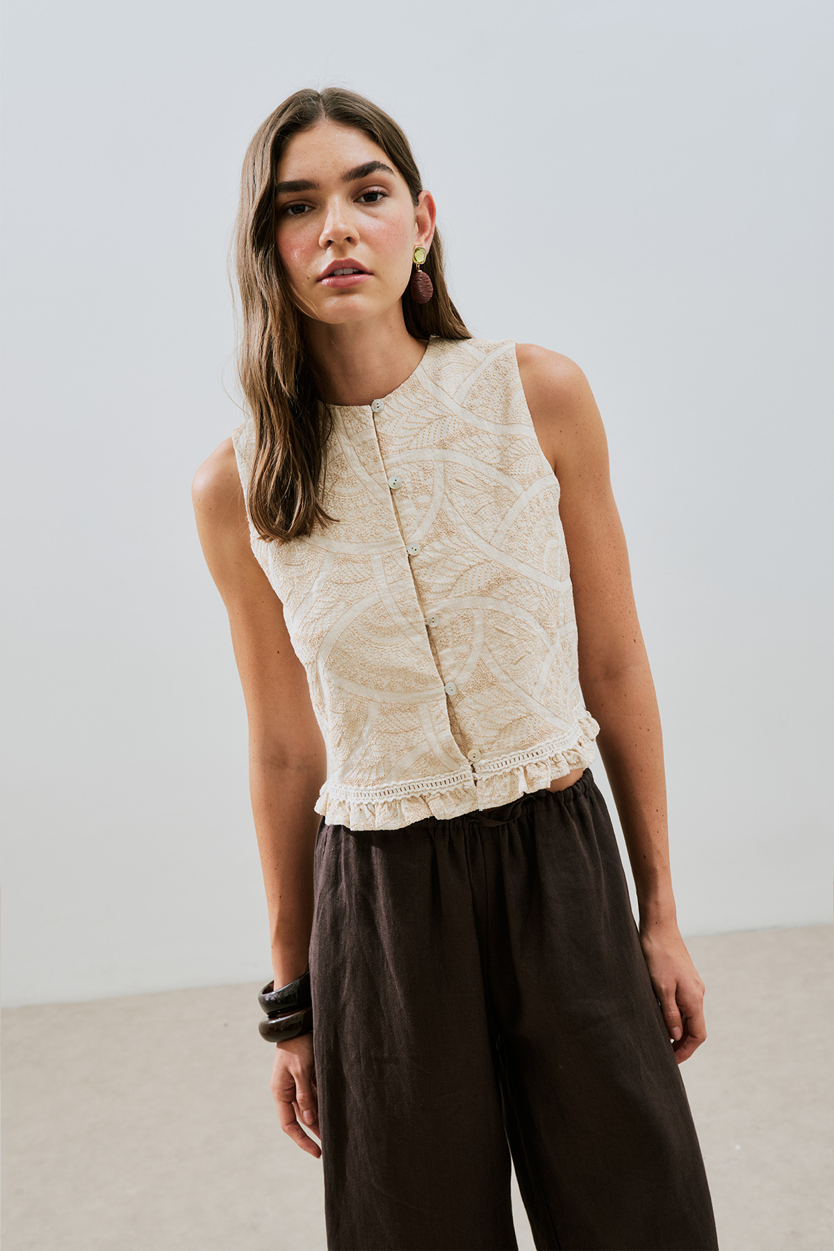 DOKULU NAKIŞLI YELEK NATURAL DOKULU NAKIŞLI YELEK NATURAL SS25YLK00005 M/L