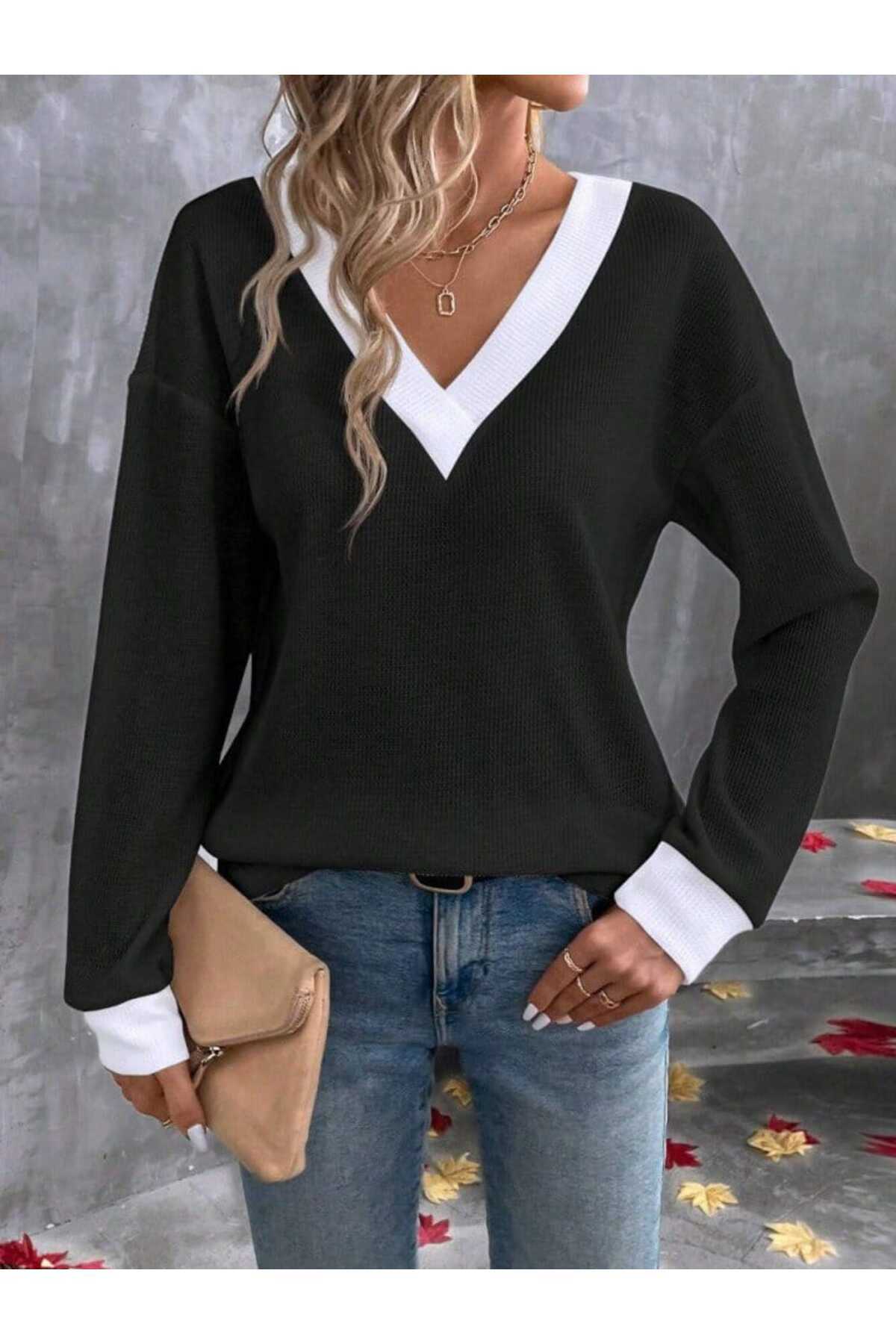 Yeni Sezon Kadın Uzun Kollu V Yaka Waffle Bluz Yeni Sezon Kadın Uzun Kollu V Yaka Waffle Bluz SNN-71345-MN 2XL-3XL