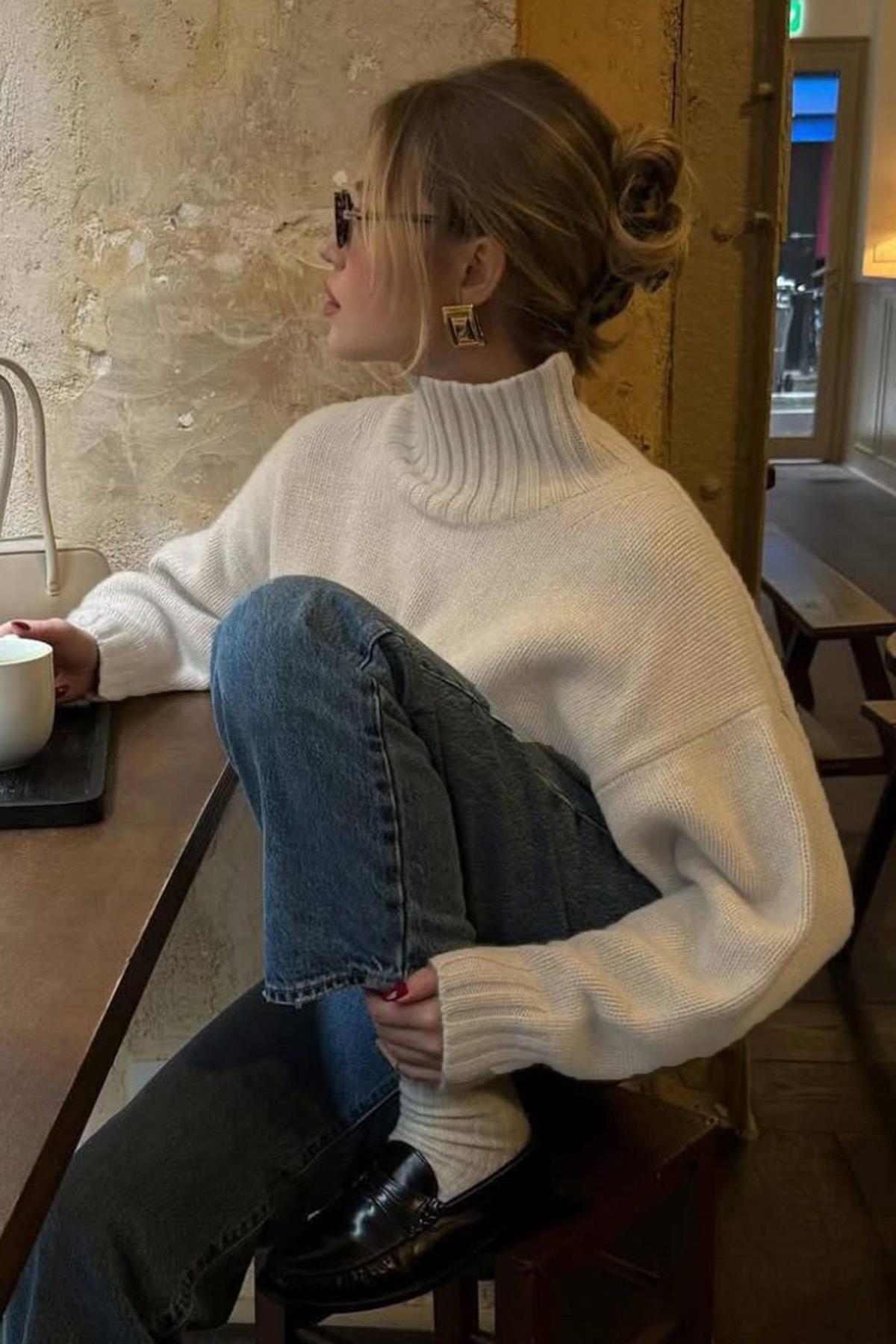 Ekru Boğazlı Kadın Triko Kazak Mg2535 Ekru Boğazlı Kadın Triko Kazak Mg2535 L