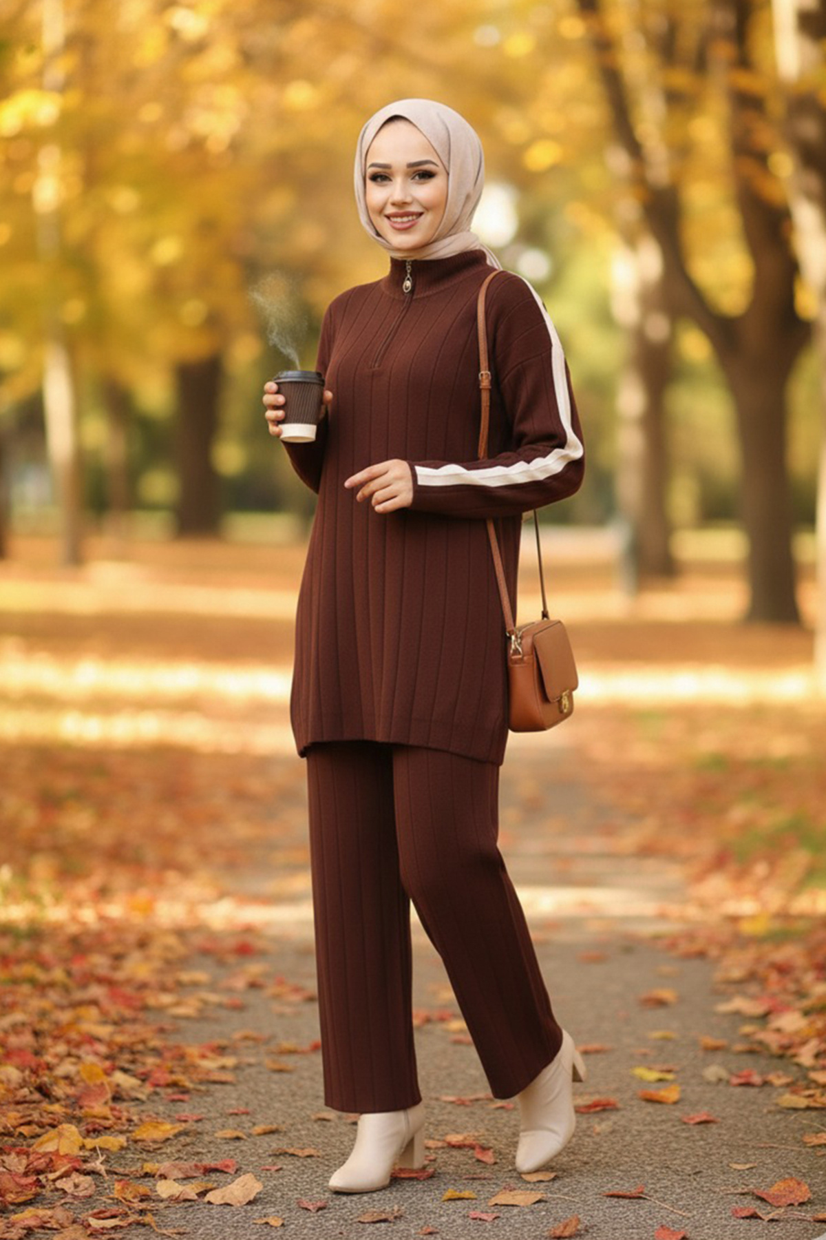Fitilli Krem Tesettür Triko İkili Takım 60381KR Fitilli Krem Tesettür Triko İkili Takım 60381KR PLT-60381 تک سایز
