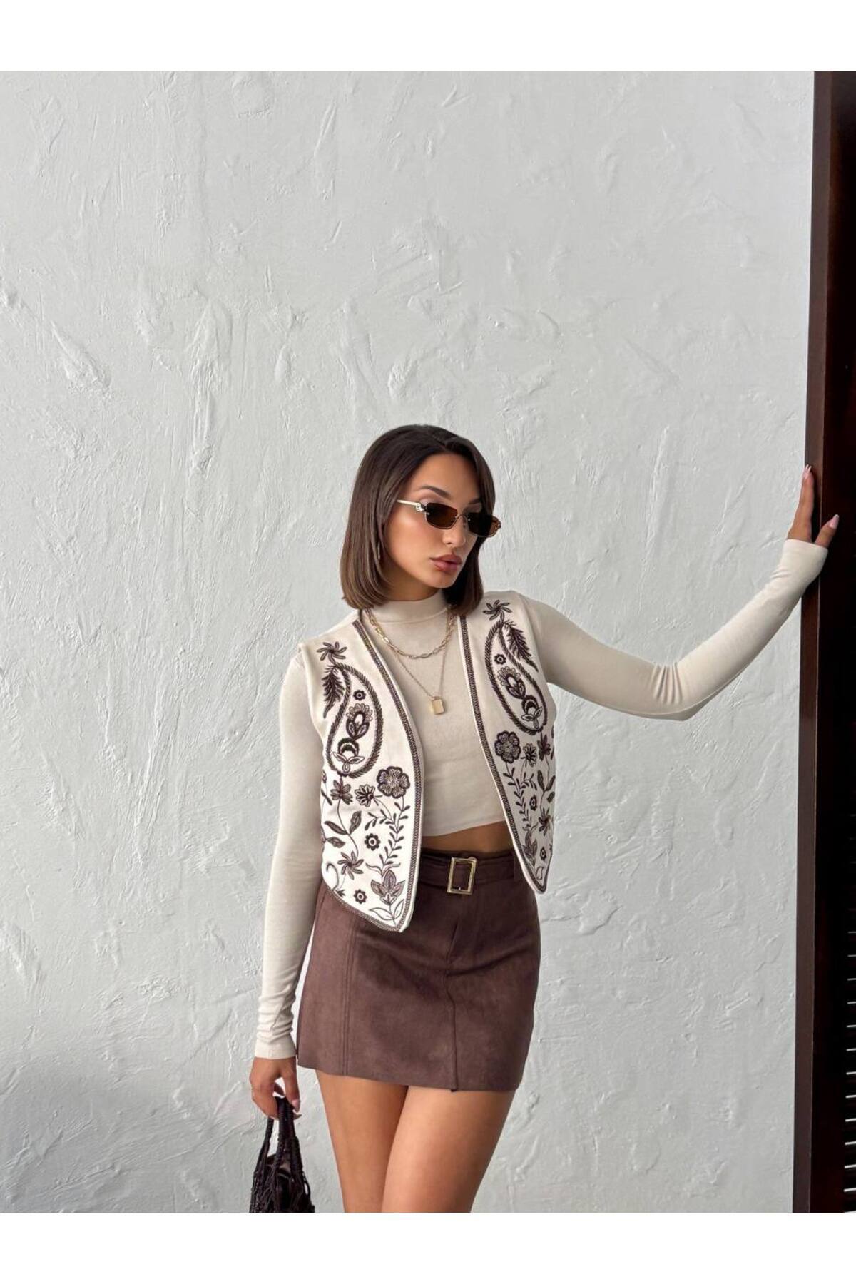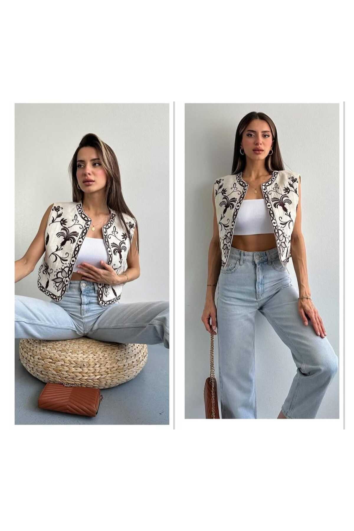 Etnik Desen İşlemeli Astarlı Cotton Yelek Etnik Desen İşlemeli Astarlı Cotton Yelek REYON39089 L