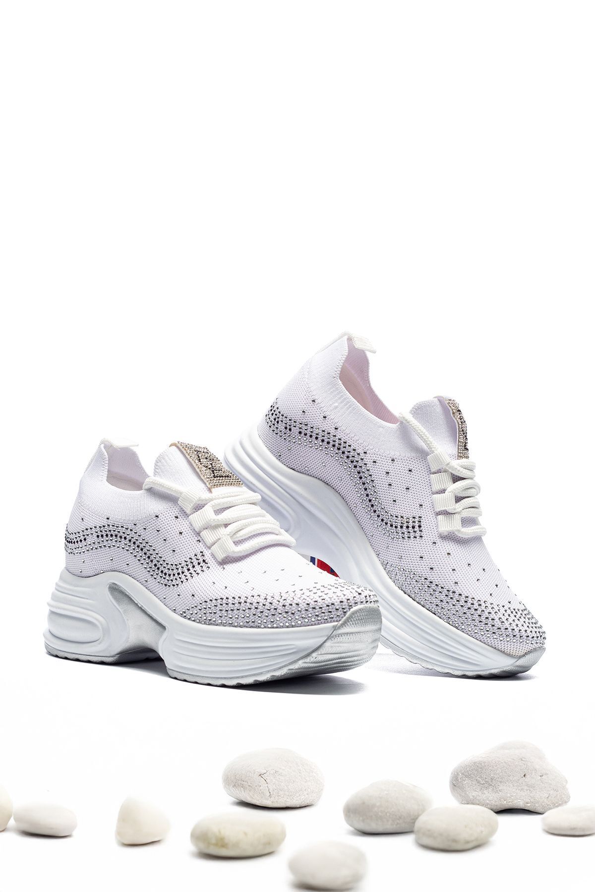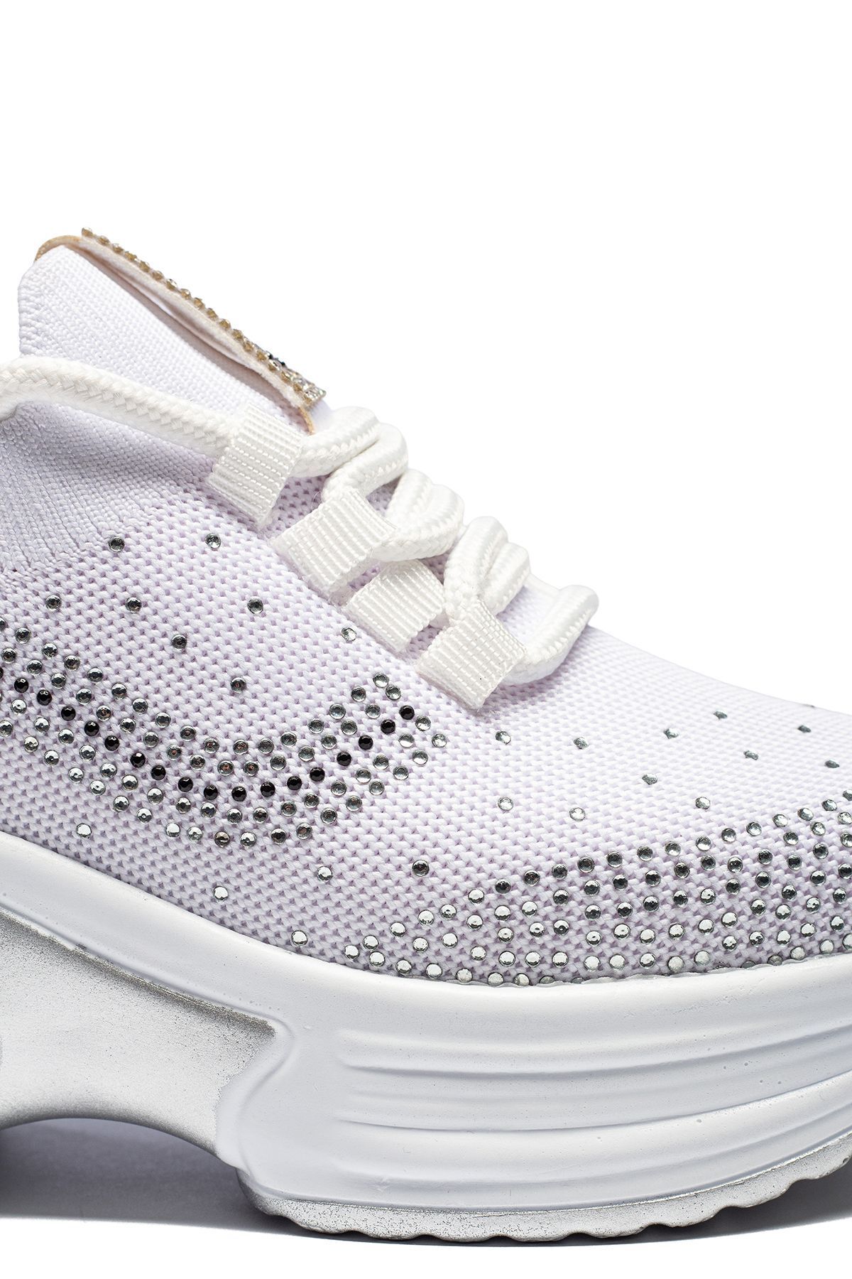 Kadın Gizli Topuk Taşlı Rahat Kalıp Bağcıklı Triko Spor Ayakkabı Beyaz Kadın Gizli Topuk Taşlı Rahat Kalıp Bağcıklı Triko Spor Ayakkabı Beyaz LUDBOOT0000400 40