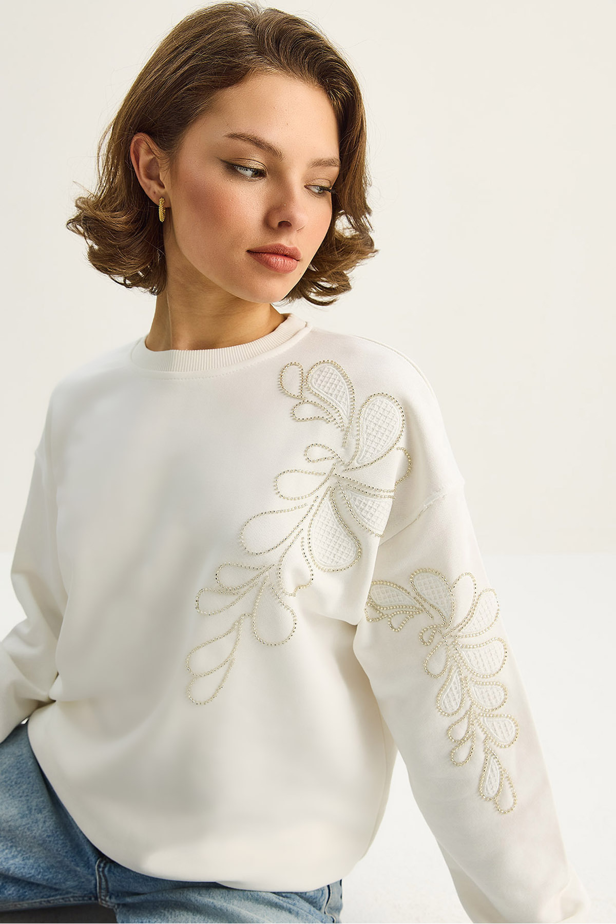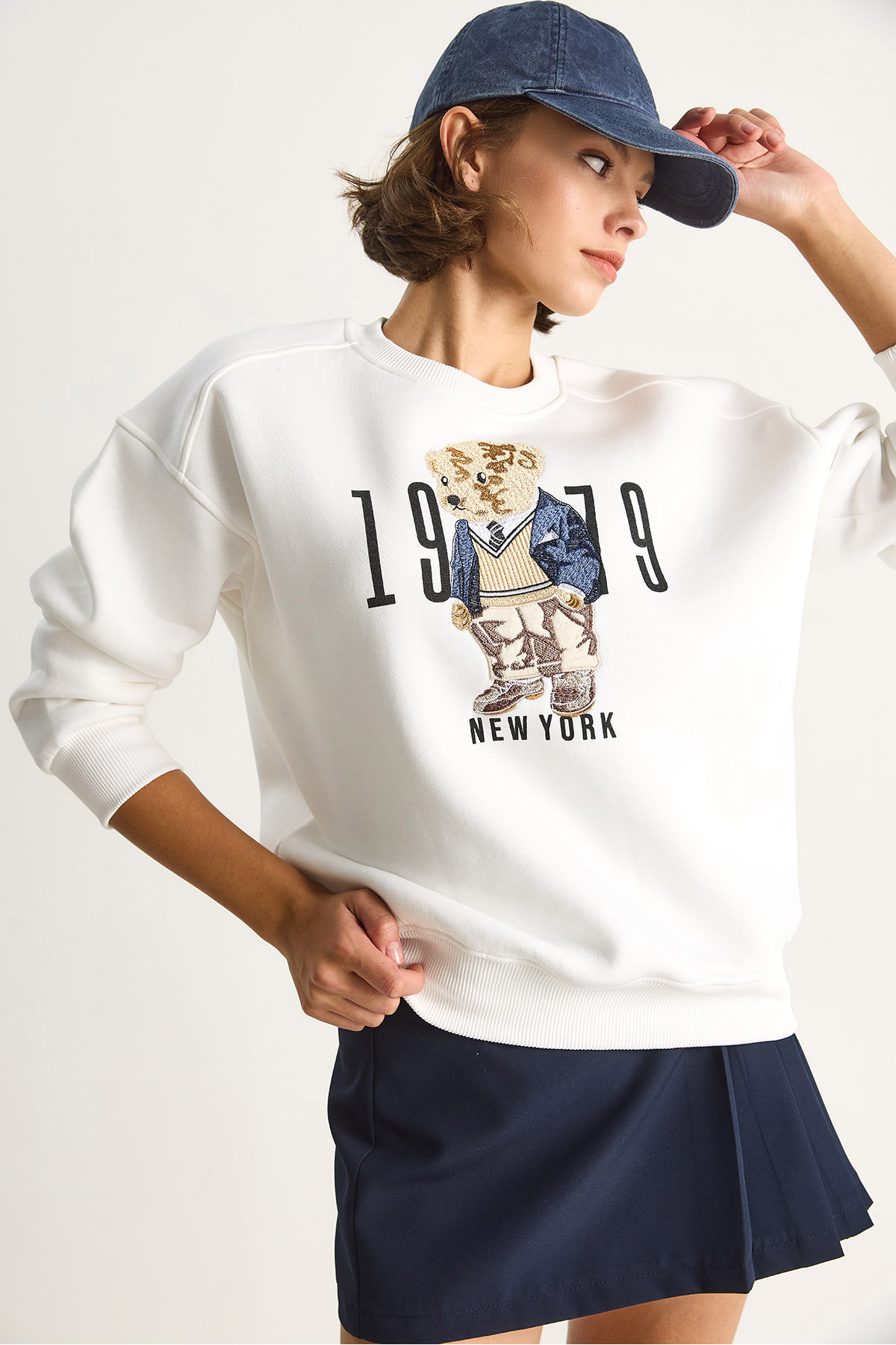 Kadın Bisiklet Yaka Teddy Nakış Detaylı Sweat 60284066 Kadın Bisiklet Yaka Teddy Nakış Detaylı Sweat 60284066 L