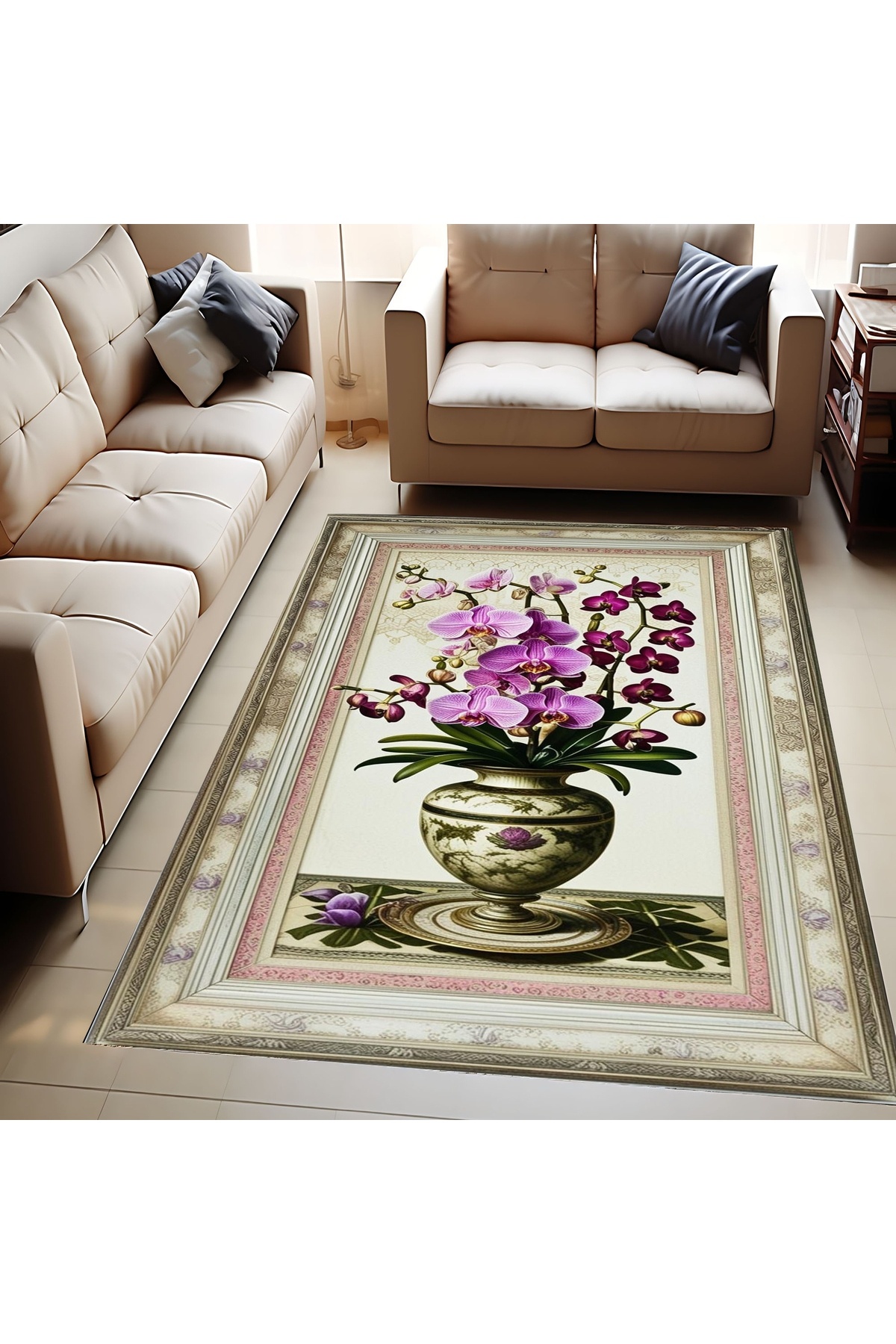 Mor Orkide Çiçek Desenli Makinede Yıkanabilir Dokuma Şönil Kilim Halı Vintage Salon Mutfak Mor Orkide Çiçek Desenli Makinede Yıkanabilir Dokuma Şönil Kilim Halı Vintage Salon Mutfak TYC61A70521FEB0C7A414C700 160 x 230