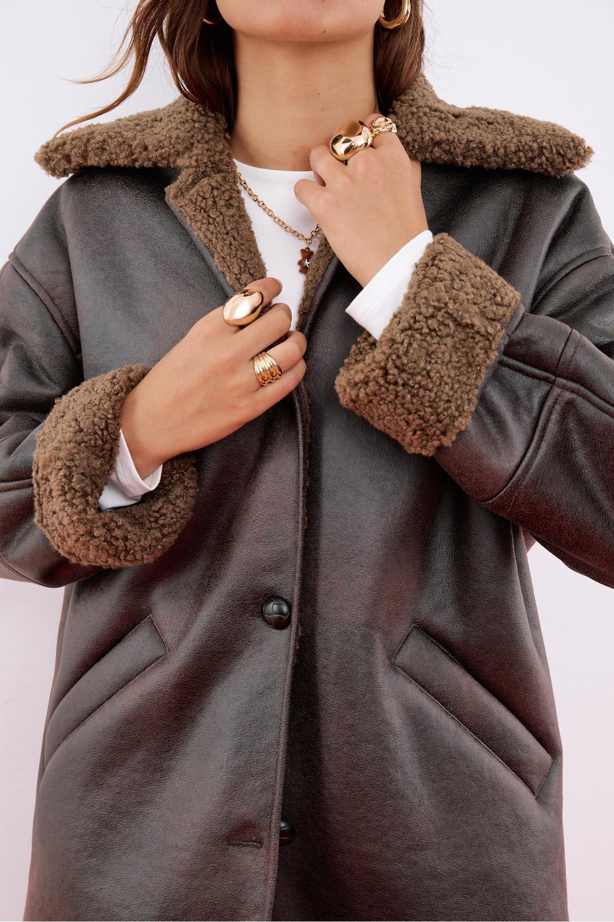 Normal kesim içi kürklü ceket Normal kesim içi kürklü ceket 05754358 XL