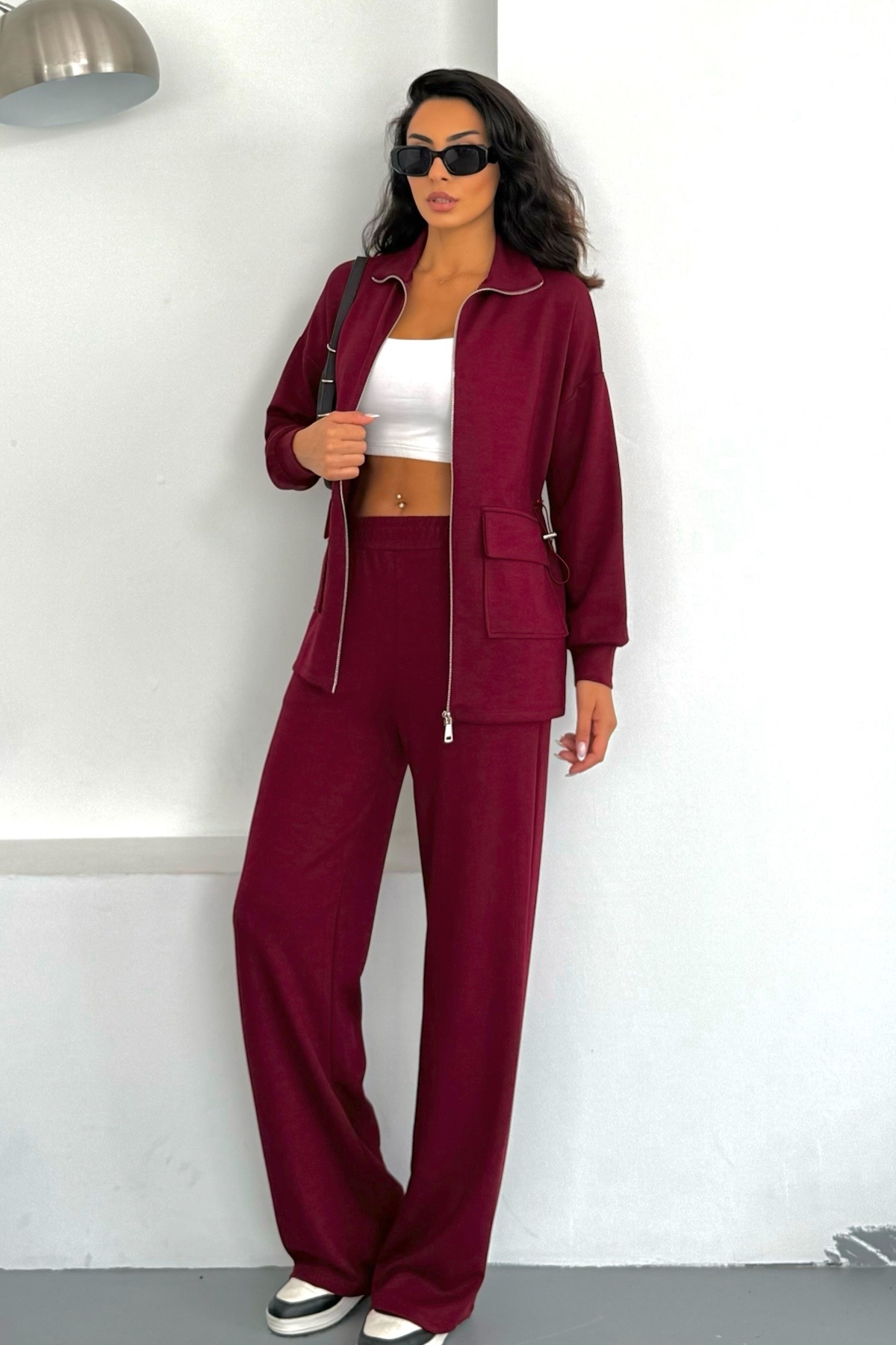 Kadın Bel Büzgü Detaylı Büyük Kapaklı Cepli Uzun Fermuarlı Üst Alt Modal Takım Kadın Bel Büzgü Detaylı Büyük Kapaklı Cepli Uzun Fermuarlı Üst Alt Modal Takım ded344 XL