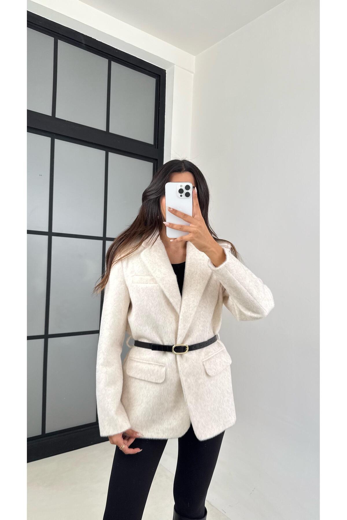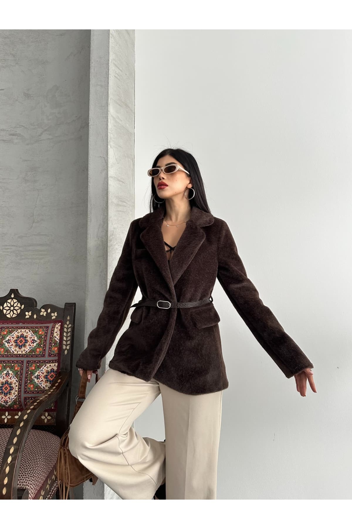 Aisha Camel Dokulu Premium Kemerli Blazer Aisha Camel Dokulu Premium Kemerli Blazer 367739 XL