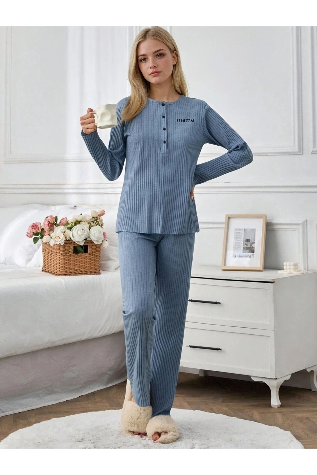 Şerit Detaylı Ribana Dokulu Pijama Takımı Şerit Detaylı Ribana Dokulu Pijama Takımı crlpjm1058 XL