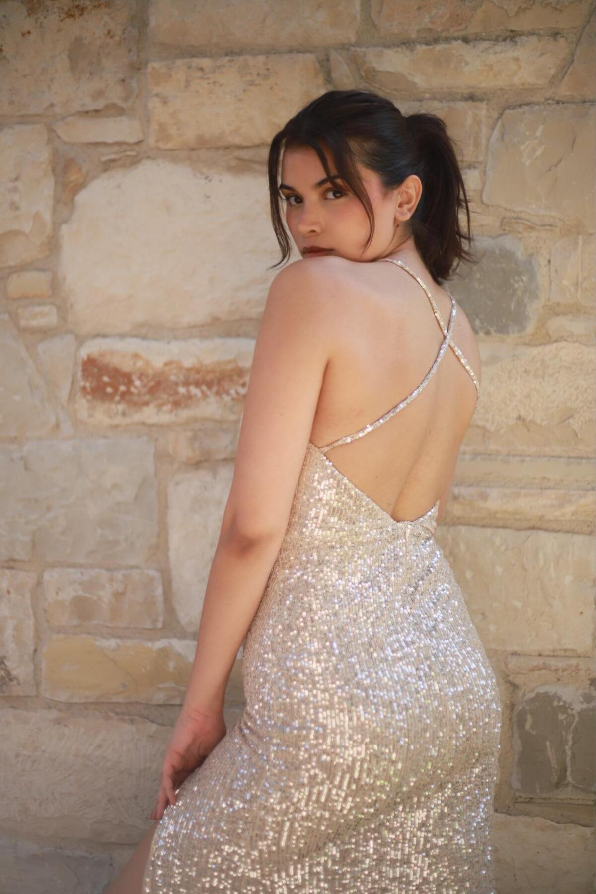 Payet Kumaş Kayık Yaka Kalem Elbise - BAKIR Payet Kumaş Kayık Yaka Kalem Elbise - BAKIR GYM-1861 42