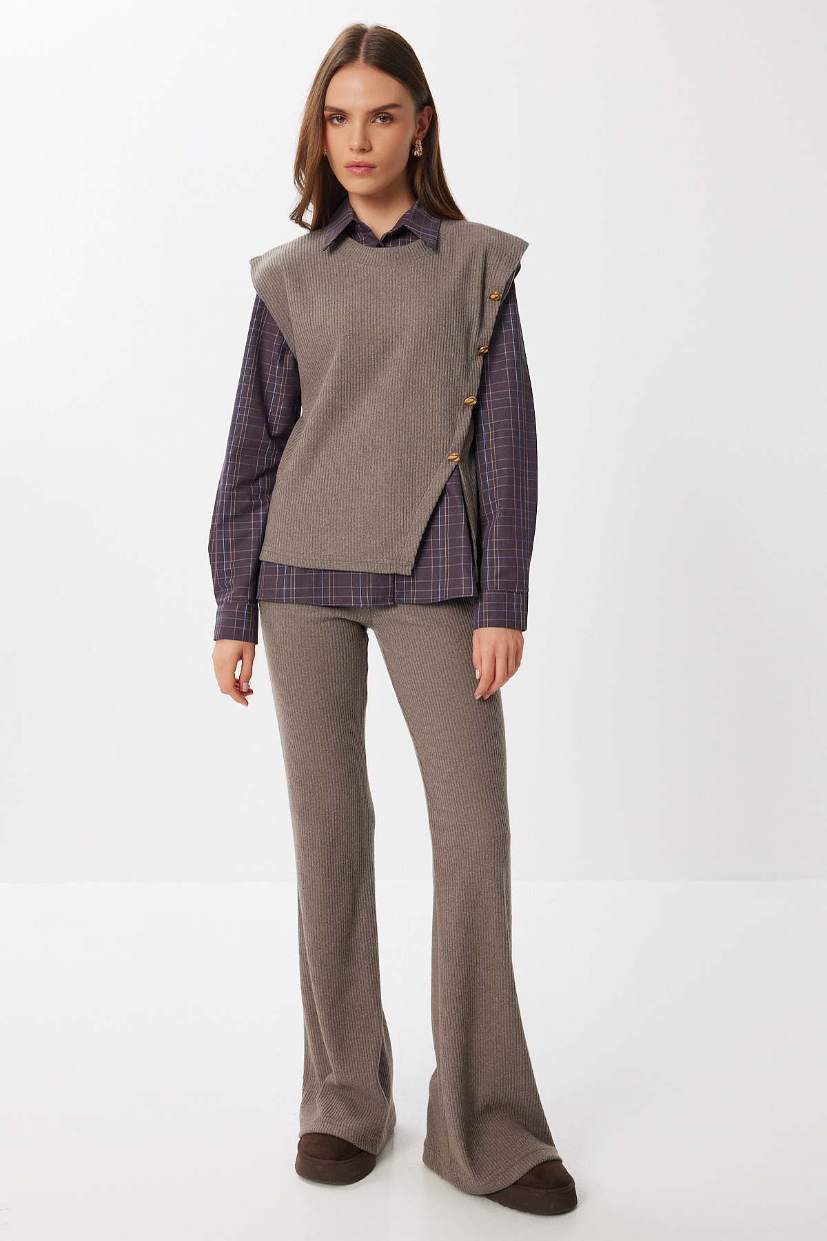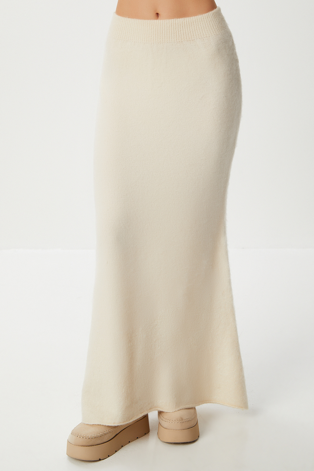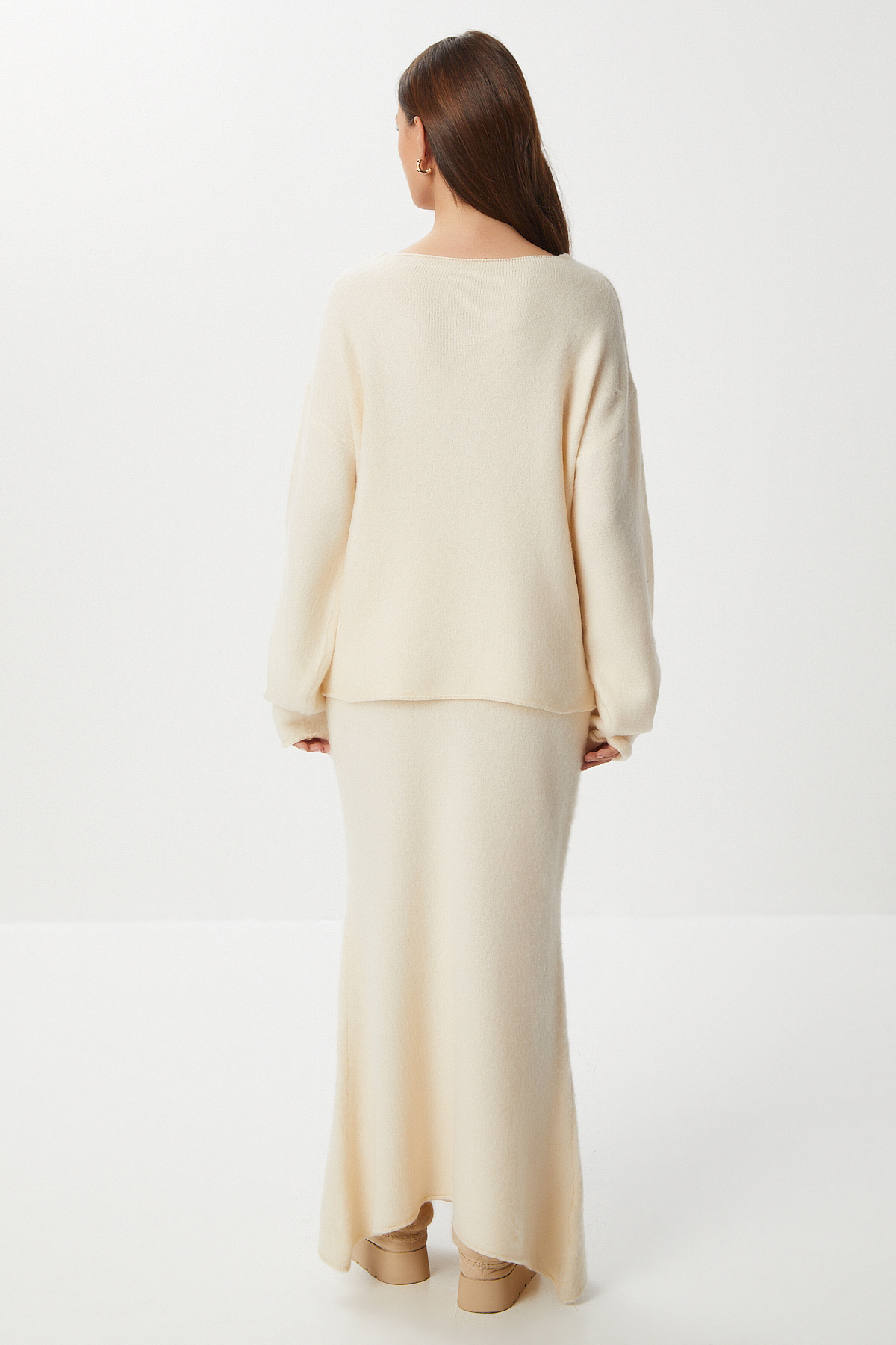Yün Karışımlı Kazak Etek Triko Takım LKİ0039 VANİLYA Yün Karışımlı Kazak Etek Triko Takım LKİ0039 VANİLYA تک سایز