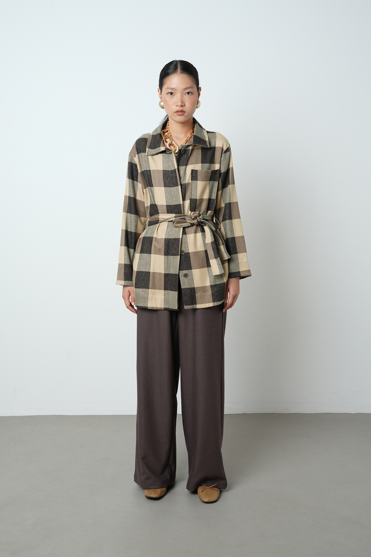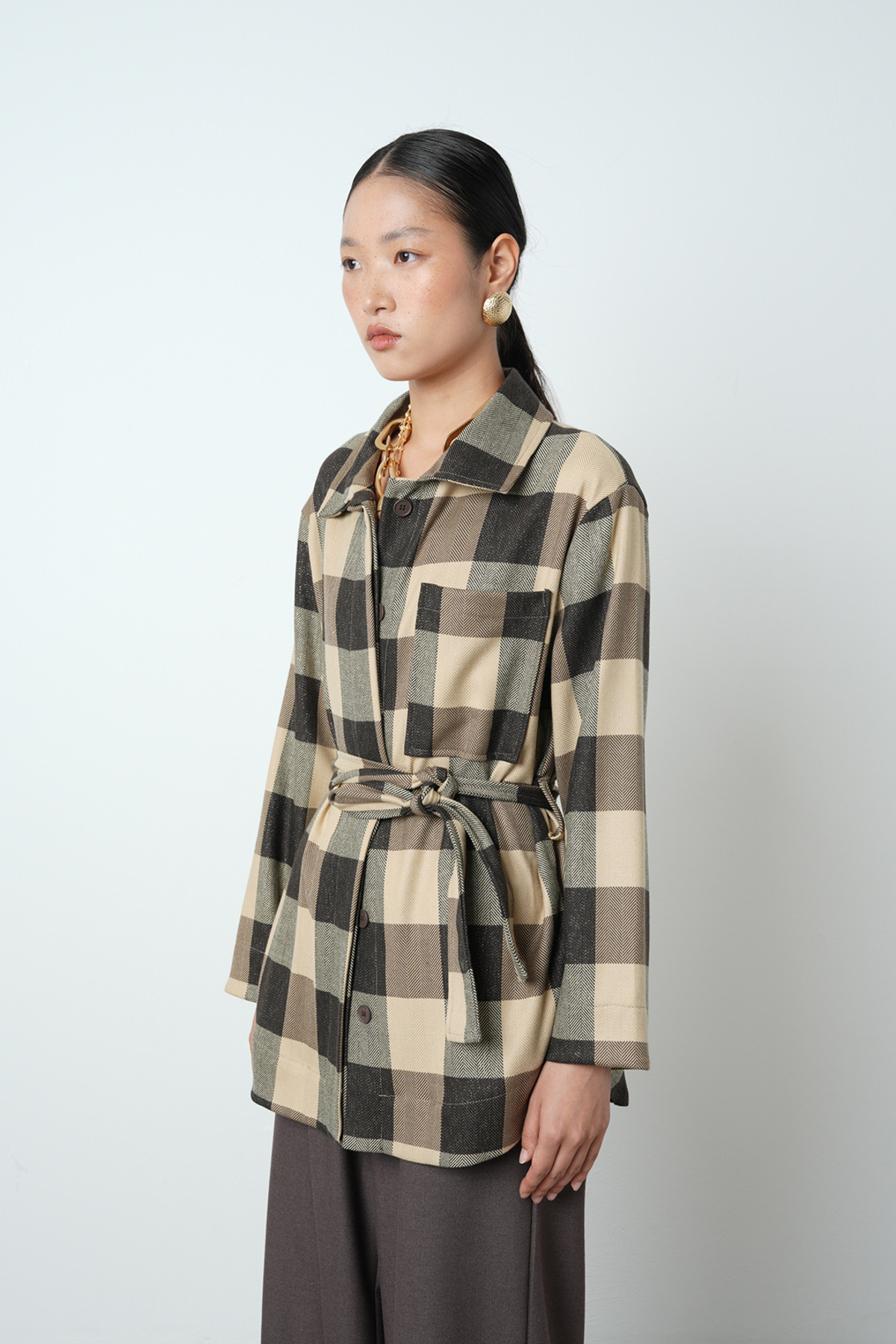 Kadın Ekose Desenli Tek Cepli Kuşaklı Tesettür Gömlek-Ceket Kadın Ekose Desenli Tek Cepli Kuşaklı Tesettür Gömlek-Ceket 34248 L