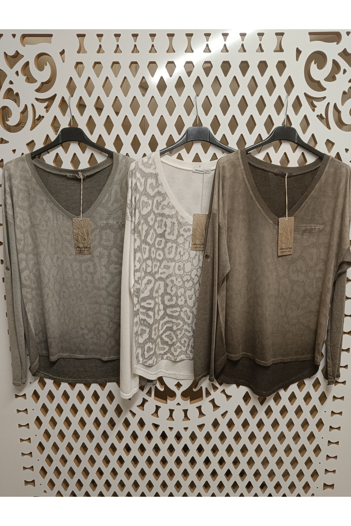 İtalyan Leopar Desenli Simli Bluz İtalyan Leopar Desenli Simli Bluz 12376 M/L