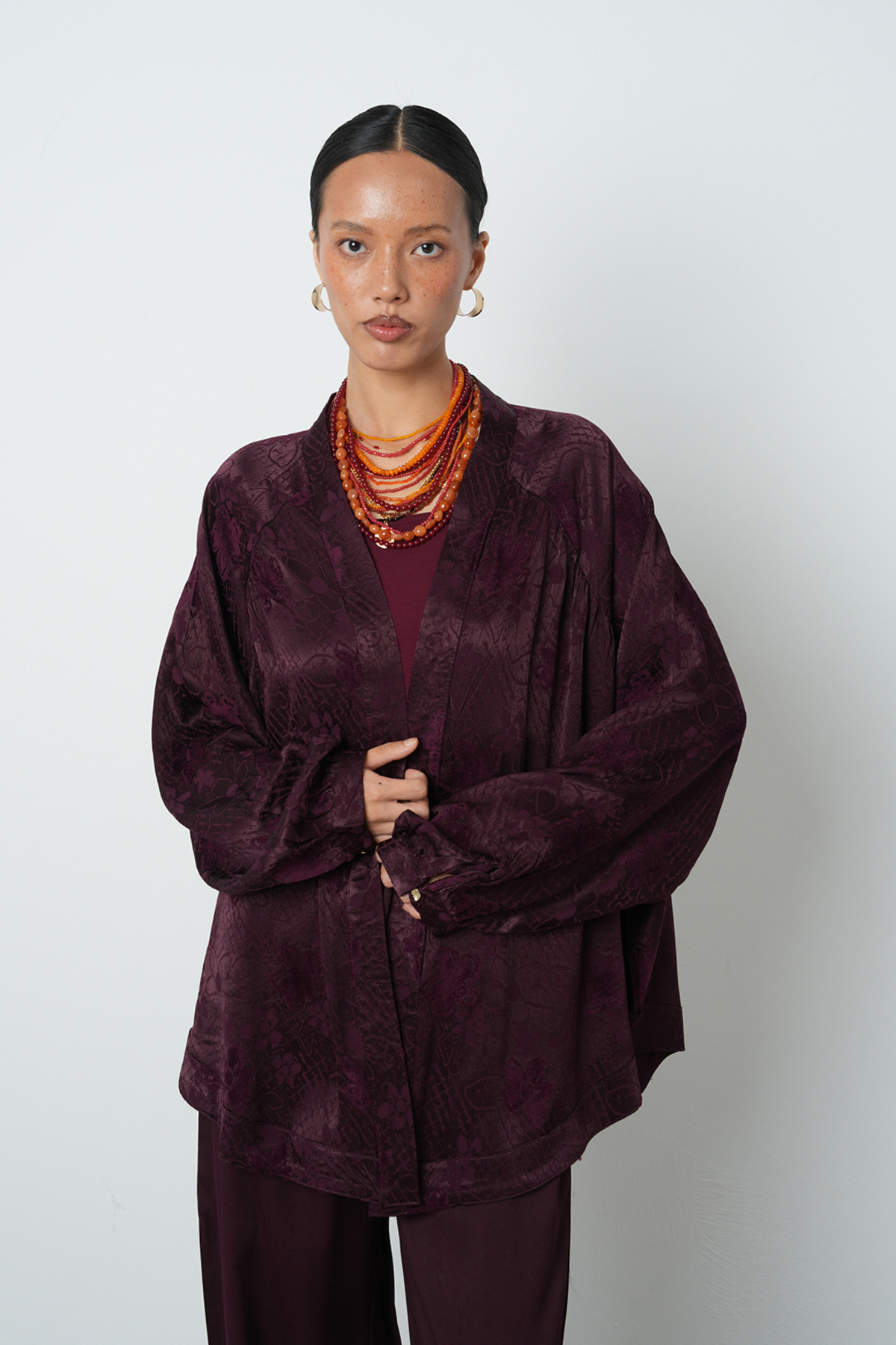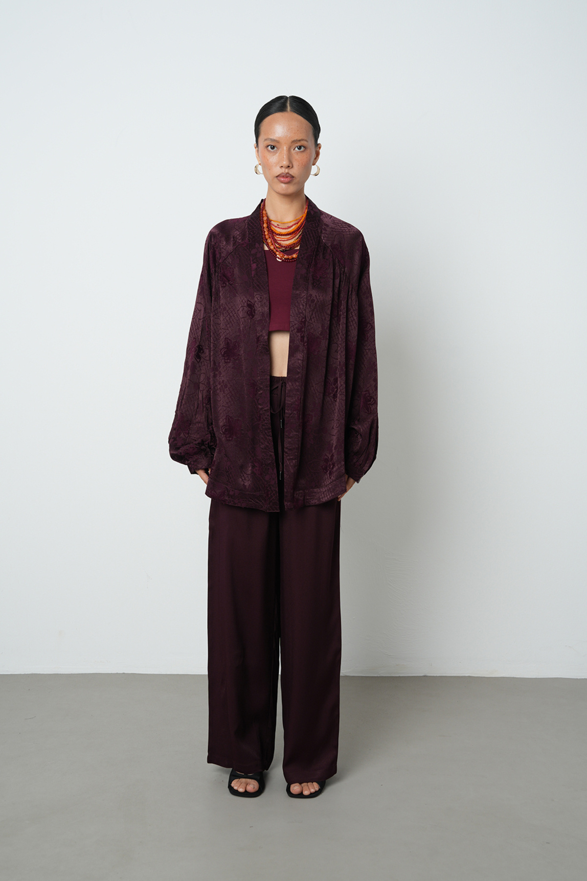 Kadın Bordo Çiçek Desenli Oversize Tesettür Kimono Kadın Bordo Çiçek Desenli Oversize Tesettür Kimono 34640 Standart