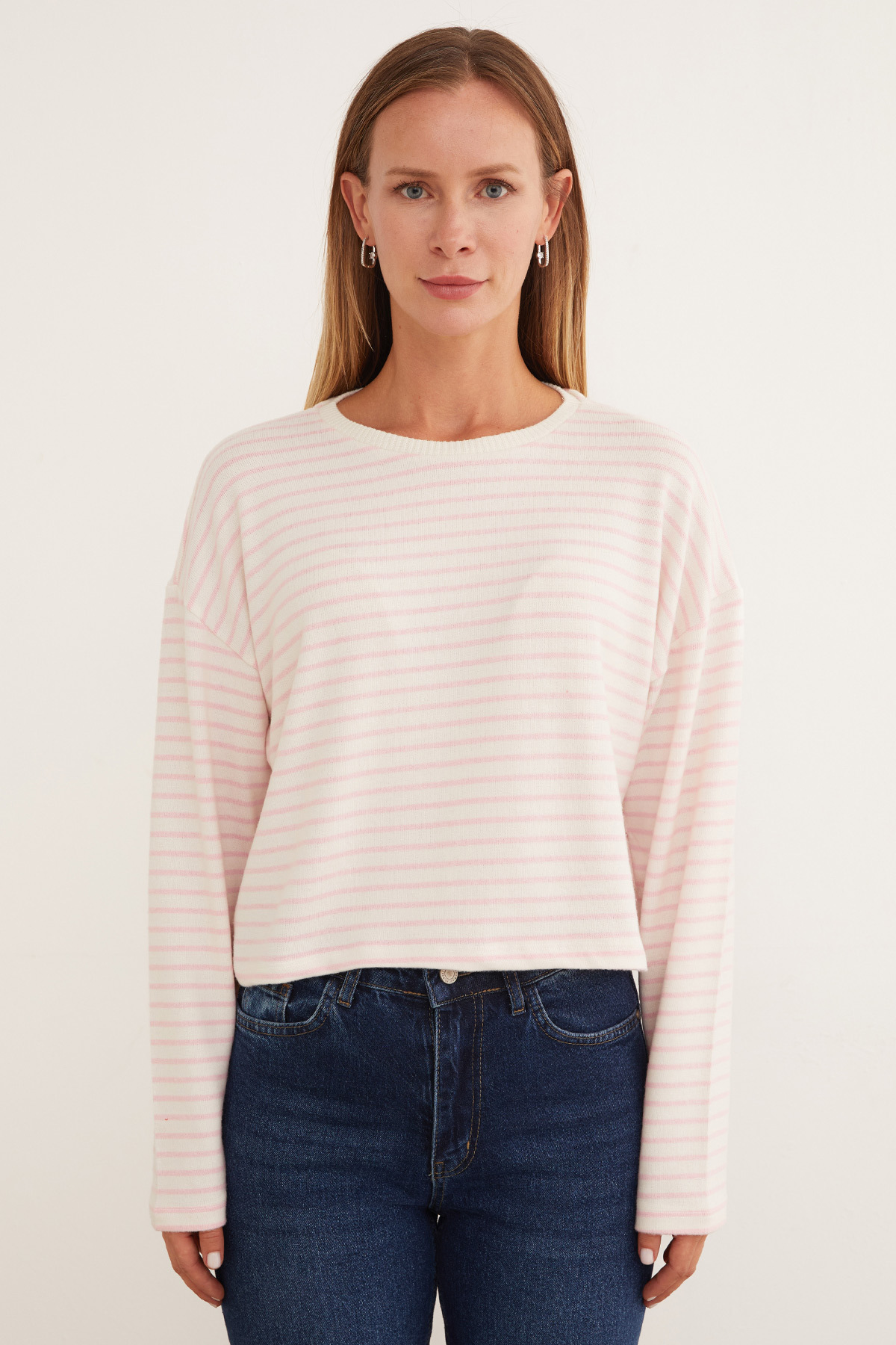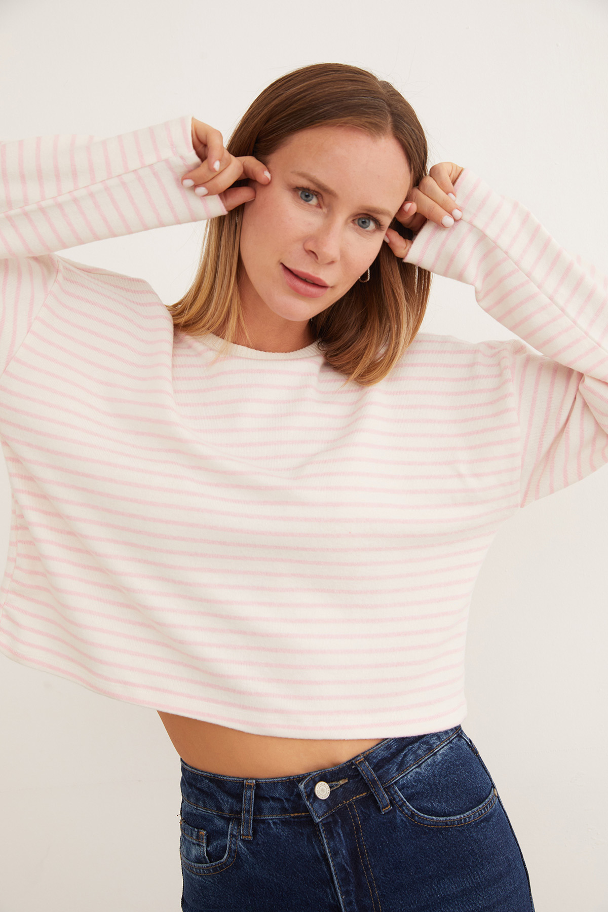 Çizgili Crop İnce Triko Kazak Çizgili Crop İnce Triko Kazak 26KGB650133051 L