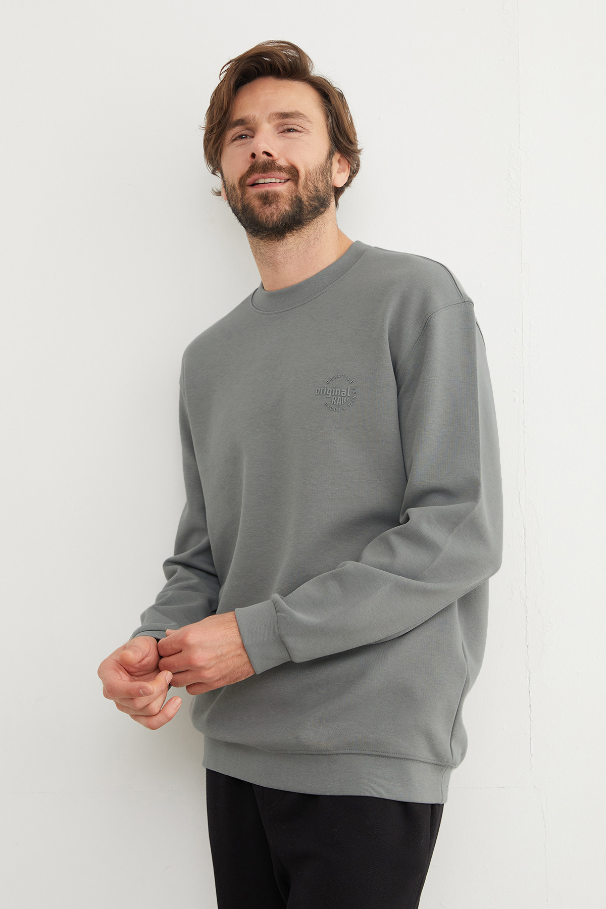 Original Raw Kabartma Baskılı Sweatshirt Original Raw Kabartma Baskılı Sweatshirt 26KERK7462132712 3XL