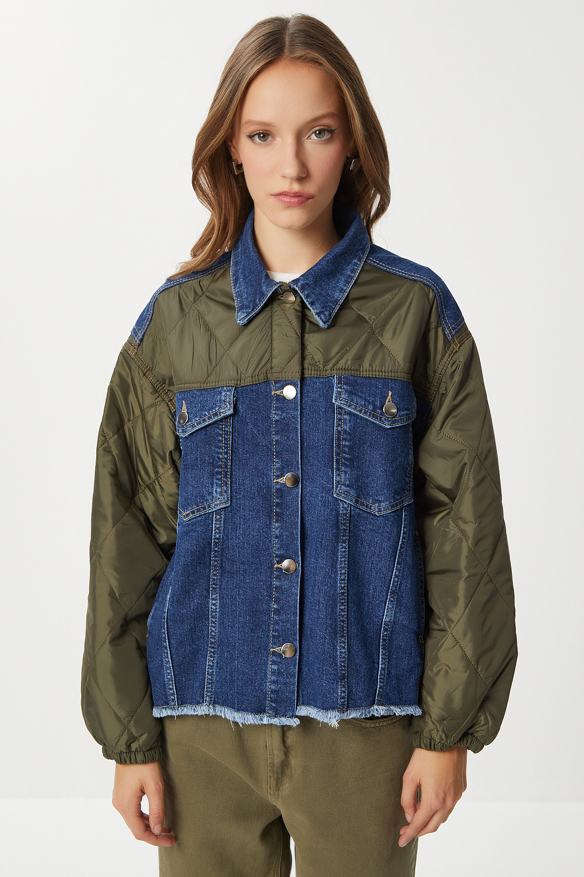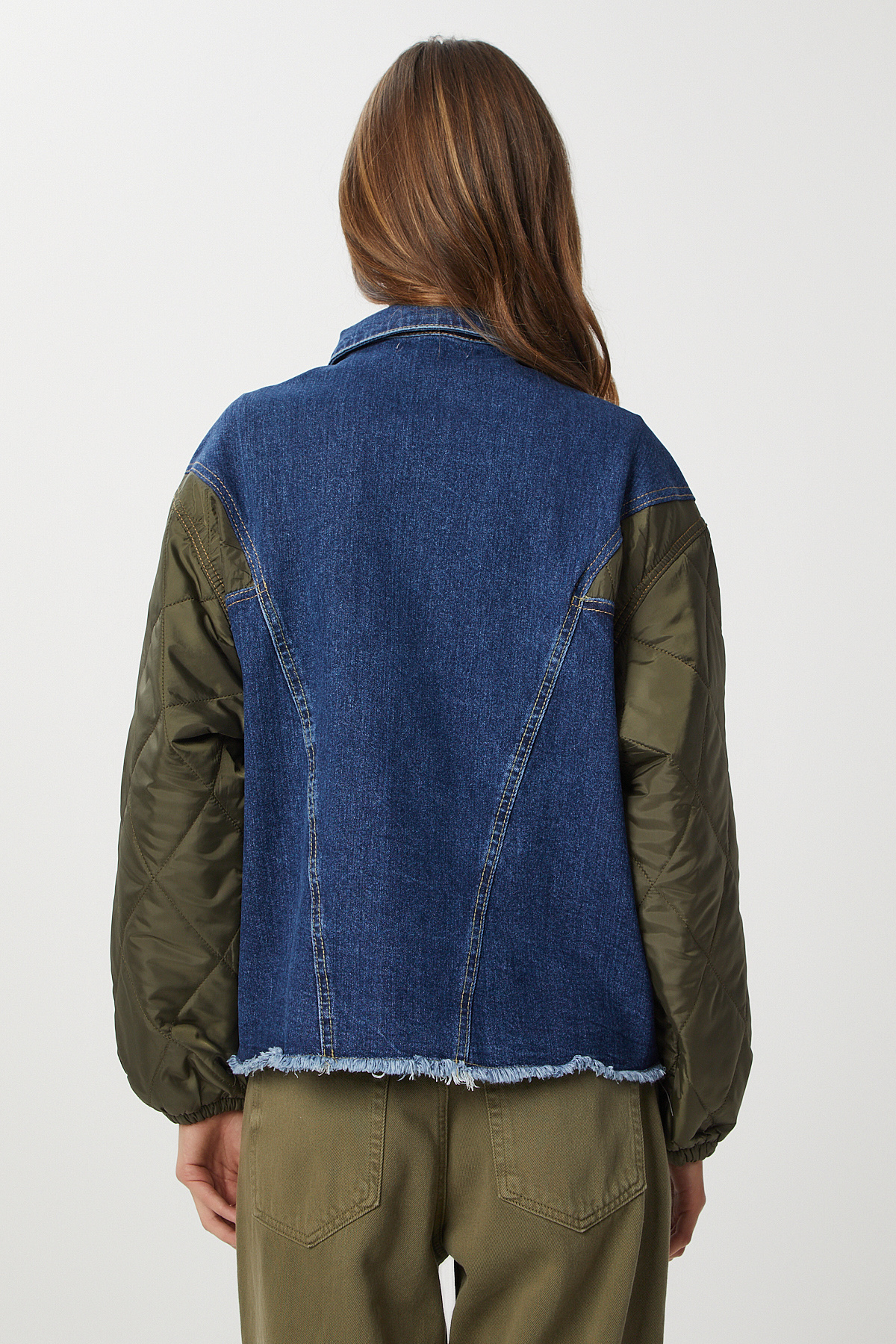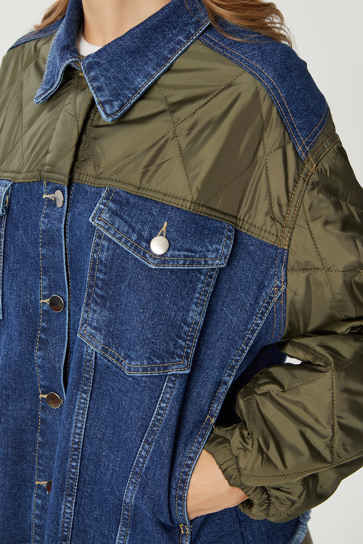 Kapitone Detaylı Denim Ceket LRW0002 KOYU MAVİ HAKİ Kapitone Detaylı Denim Ceket LRW0002 KOYU MAVİ HAKİ 40