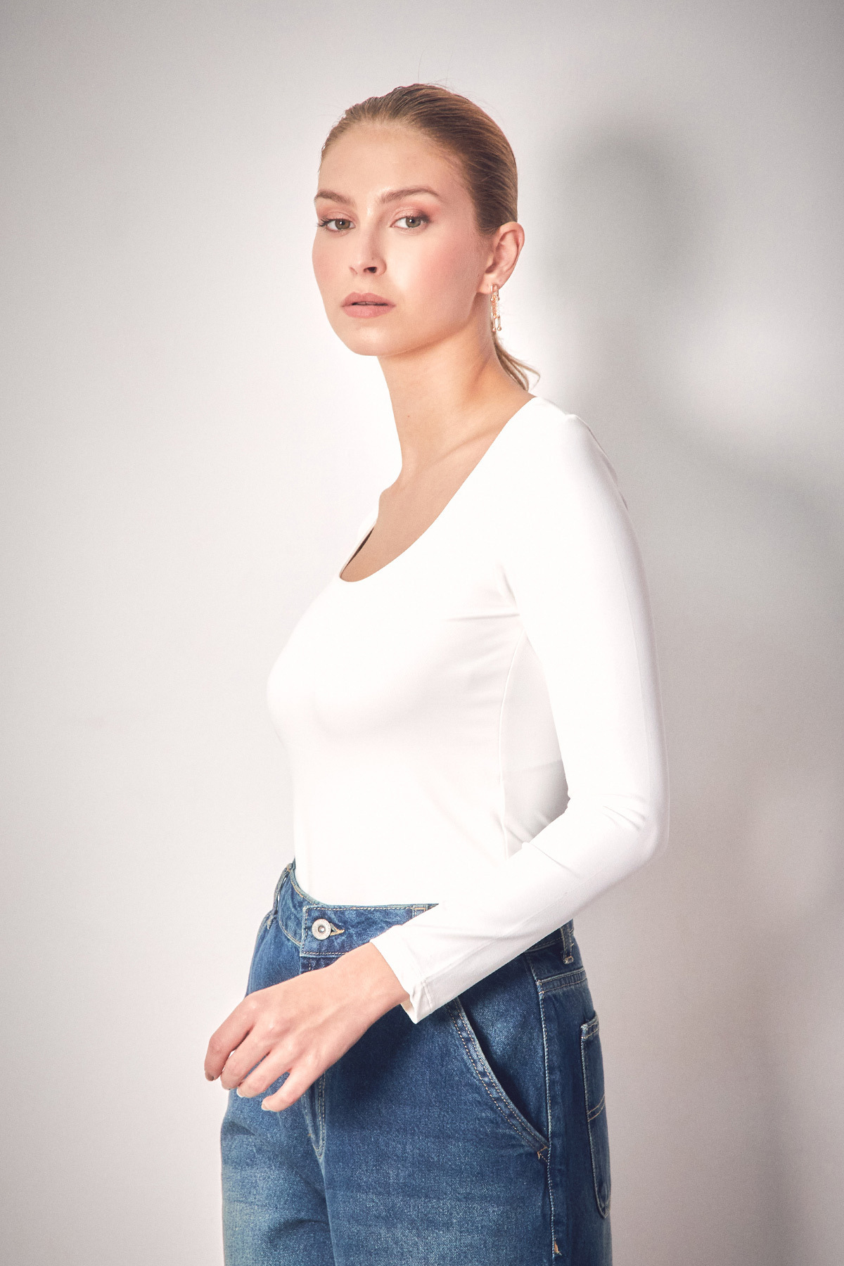 Basic Kayık Yaka Modal Bluz Basic Kayık Yaka Modal Bluz 26KGB650133694 L