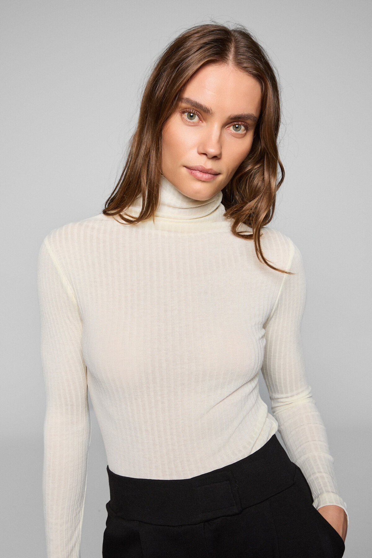 NELOURA Kadın Balıkçı Yaka Esnek Kumaşlı Ekru Bluz NELOURA Kadın Balıkçı Yaka Esnek Kumaşlı Ekru Bluz NELOURA01012025 XL
