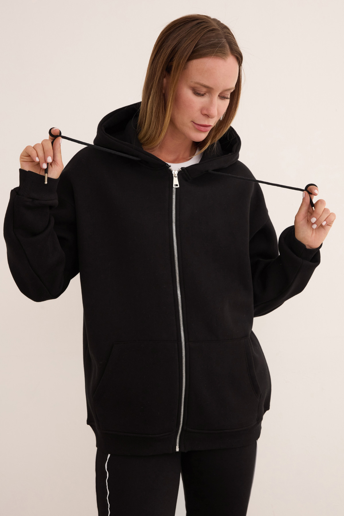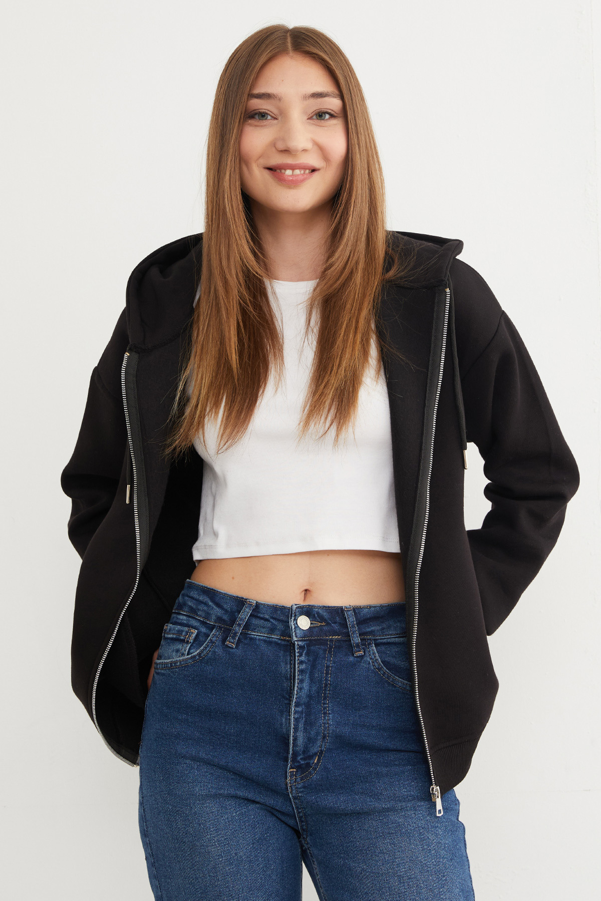 Basic Fermuarlı Kapüşonlu Oversize Sweatshirt Basic Fermuarlı Kapüşonlu Oversize Sweatshirt 26KGB6197131666 L/XL