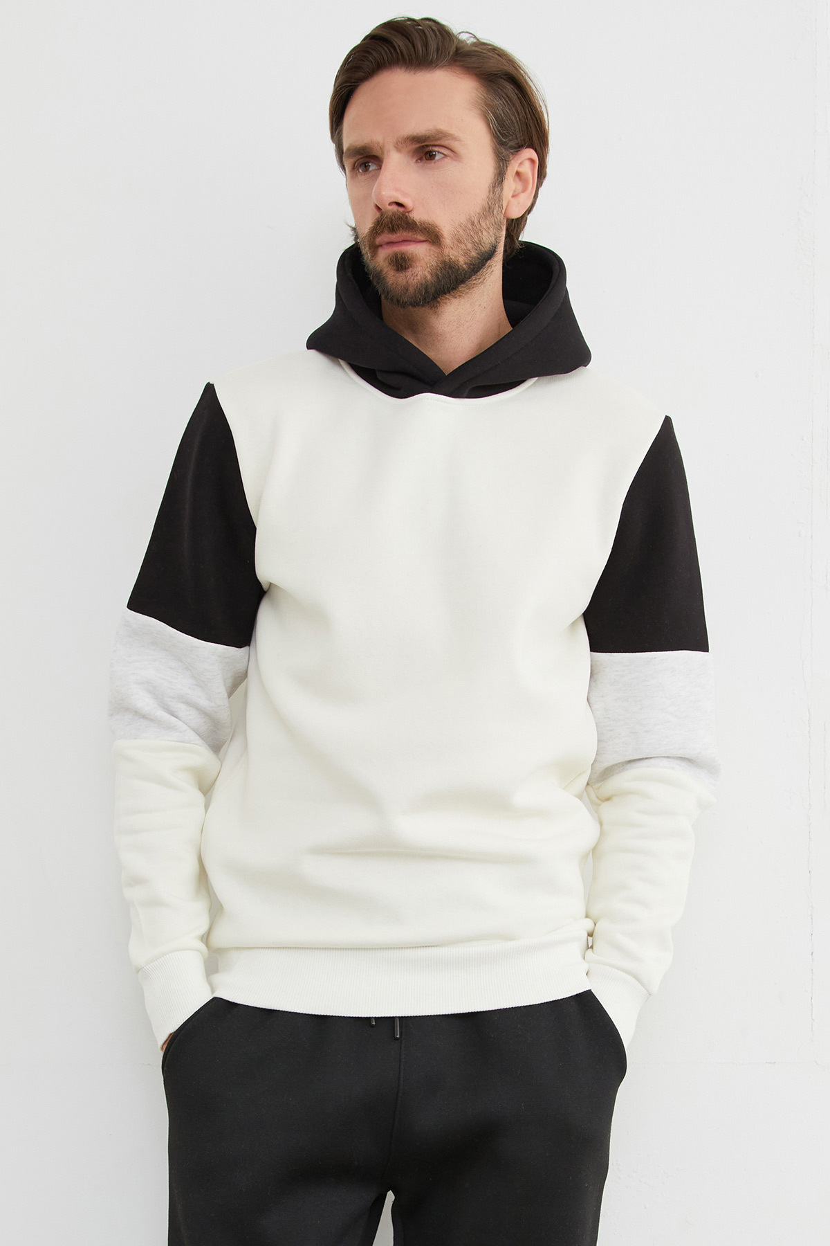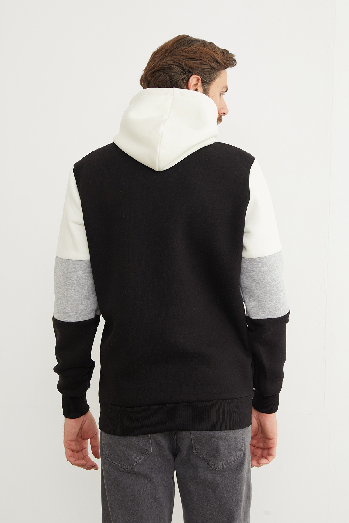 3 İplik Kolu Renk Bloklu Kapüşonlu Sweatshirt 3 İplik Kolu Renk Bloklu Kapüşonlu Sweatshirt 26KERK6045130280 3XL