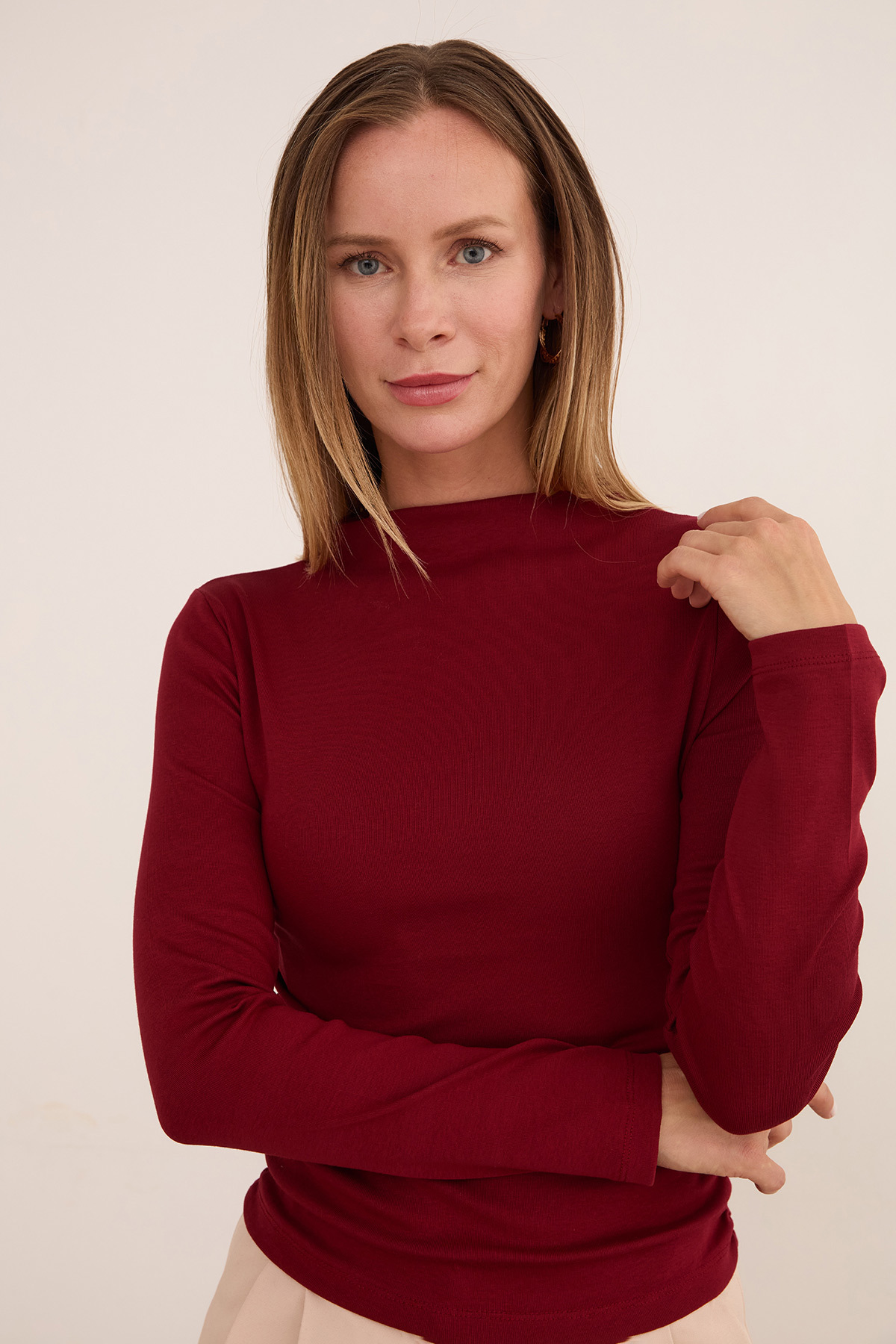 Basic Yanları Drapeli Dik Yaka Modal Bluz Basic Yanları Drapeli Dik Yaka Modal Bluz 26KGB650133433 L