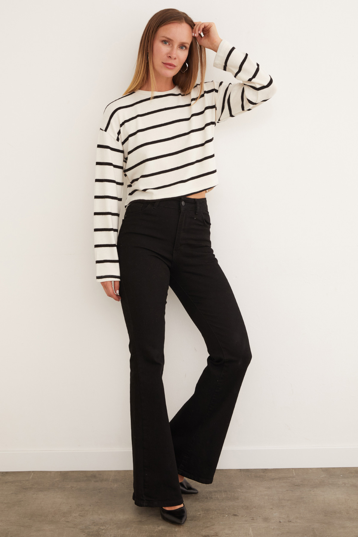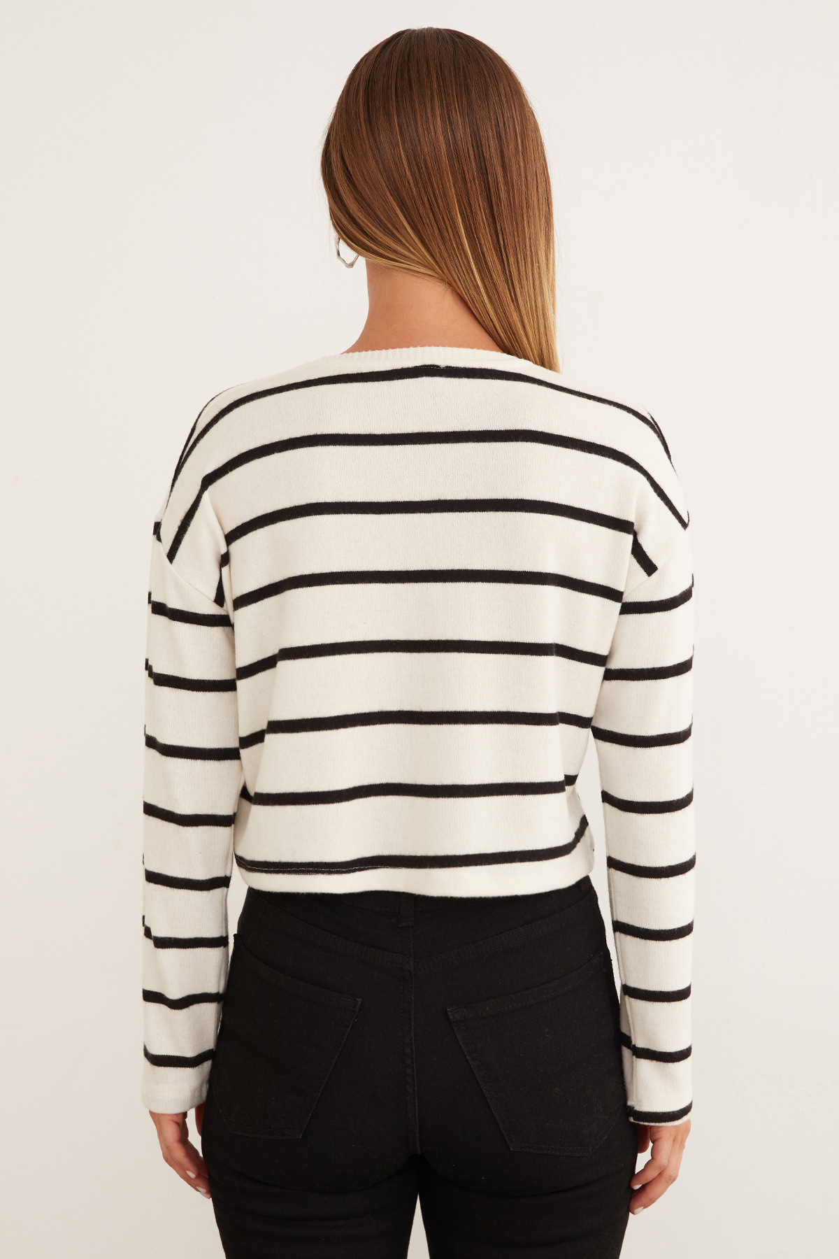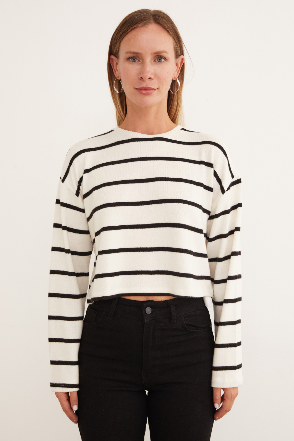 Çizgili Crop İnce Triko Kazak Çizgili Crop İnce Triko Kazak 26KGB650133051 L