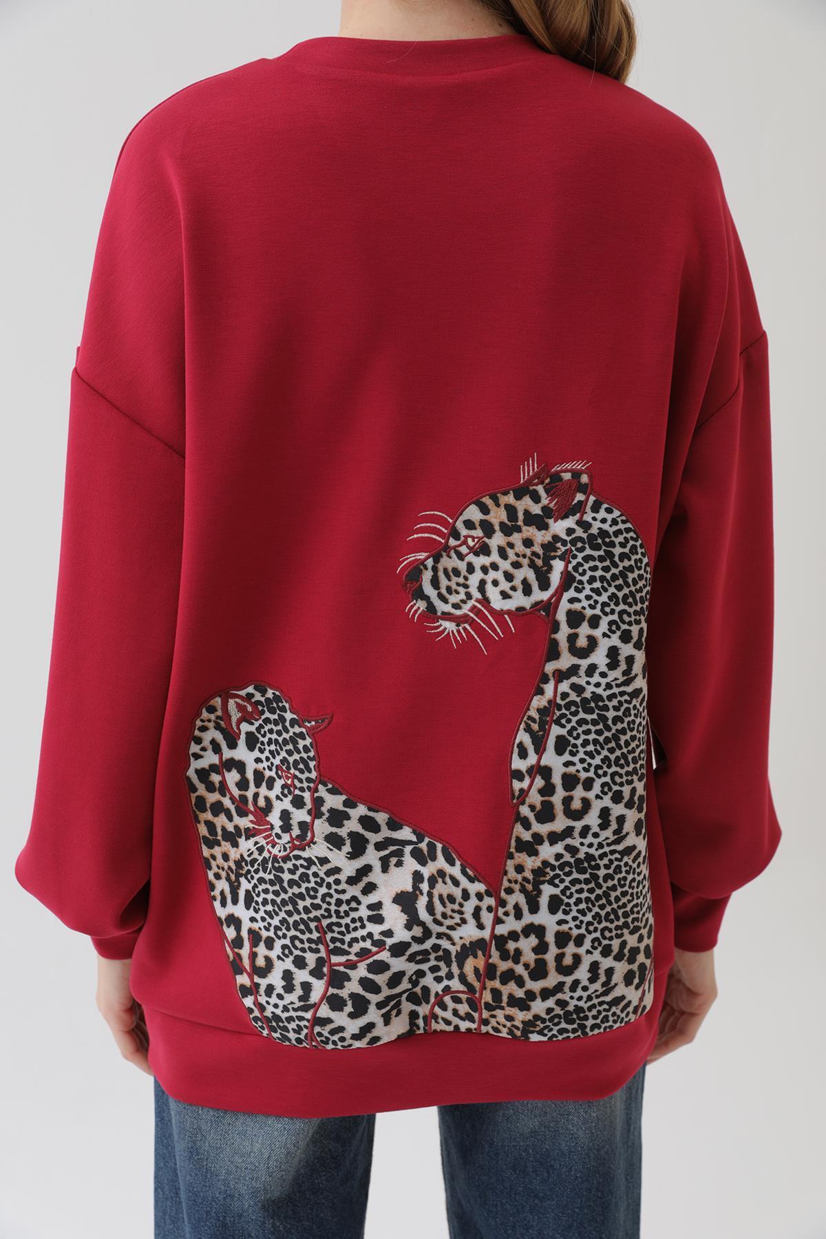 Kadın Arkası Leopar Detaylı Sweatshirt-32112SWT - Bordo Kadın Arkası Leopar Detaylı Sweatshirt-32112SWT - Bordo 24W-32112SWT L/XL