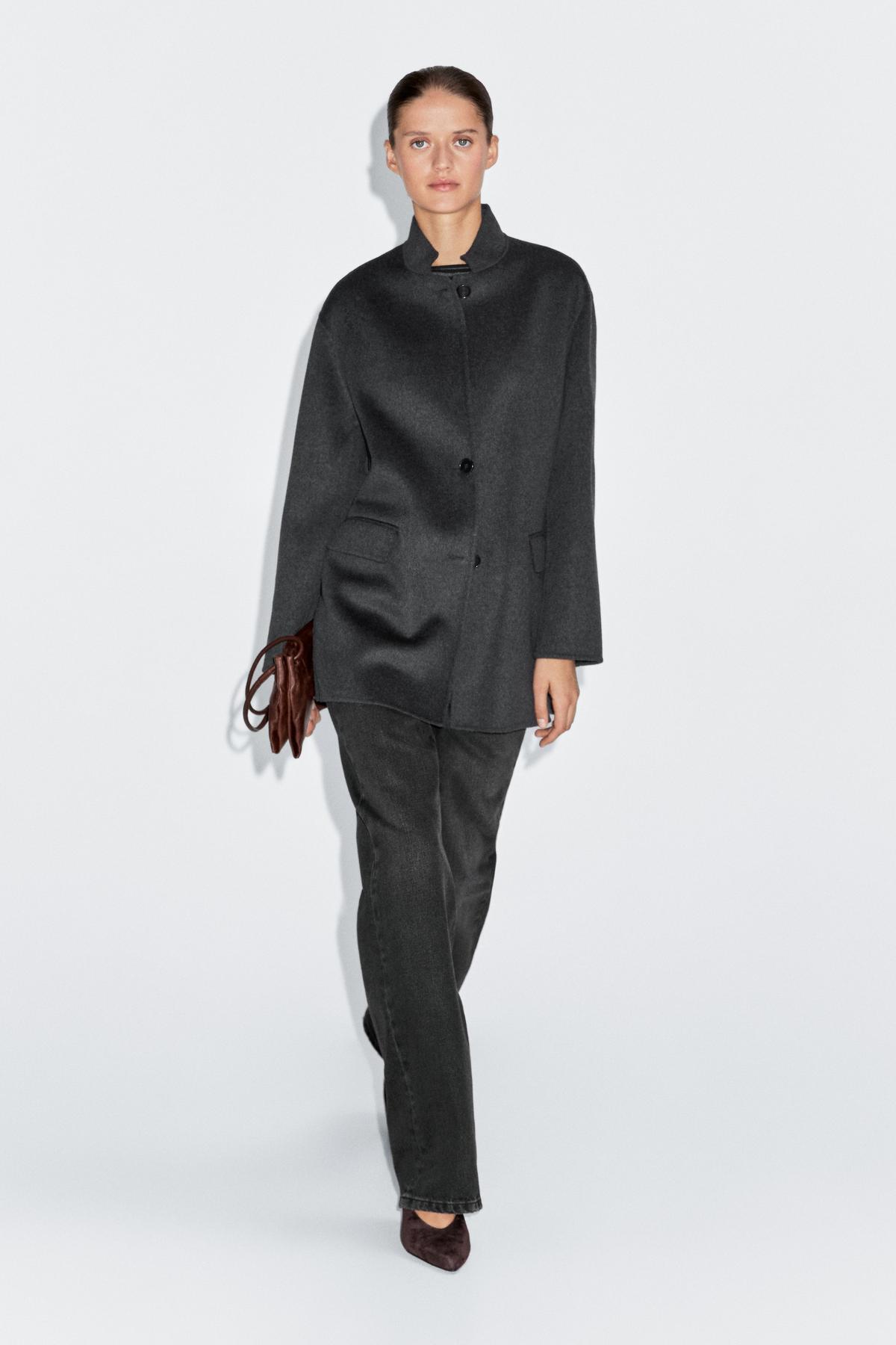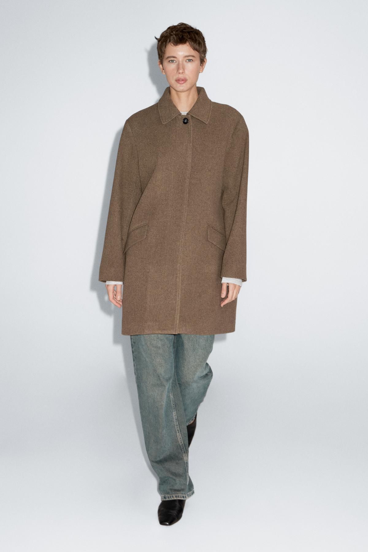 Yün karışımlı dik yaka kaban Yün karışımlı dik yaka kaban 00110779206414965 L