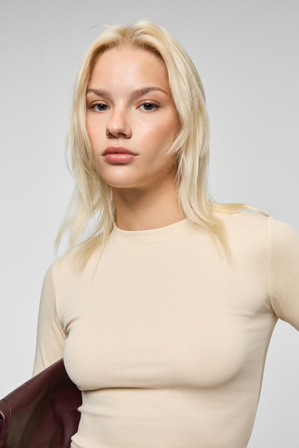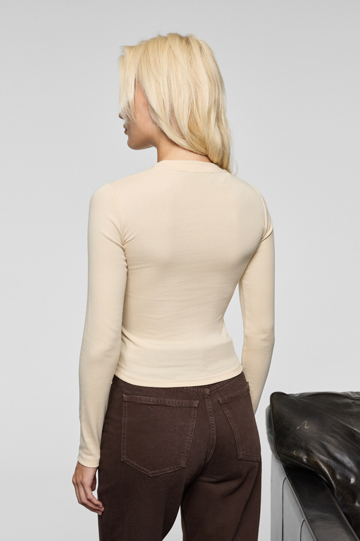 GRIGROS Kadın Esnek Kumaşlı Vücuda Oturan Slim Fit Uzun Kollu Bej T-Shirt GRIGROS Kadın Esnek Kumaşlı Vücuda Oturan Slim Fit Uzun Kollu Bej T-Shirt GRIGROS01012025 XL