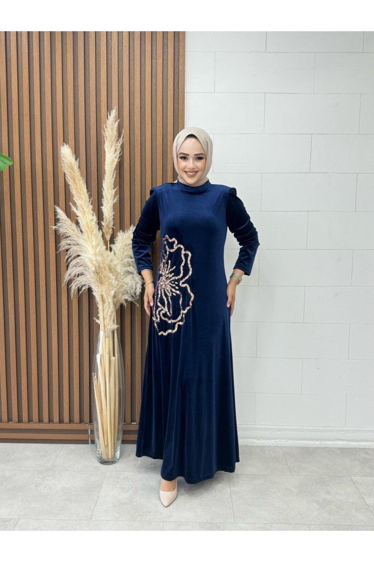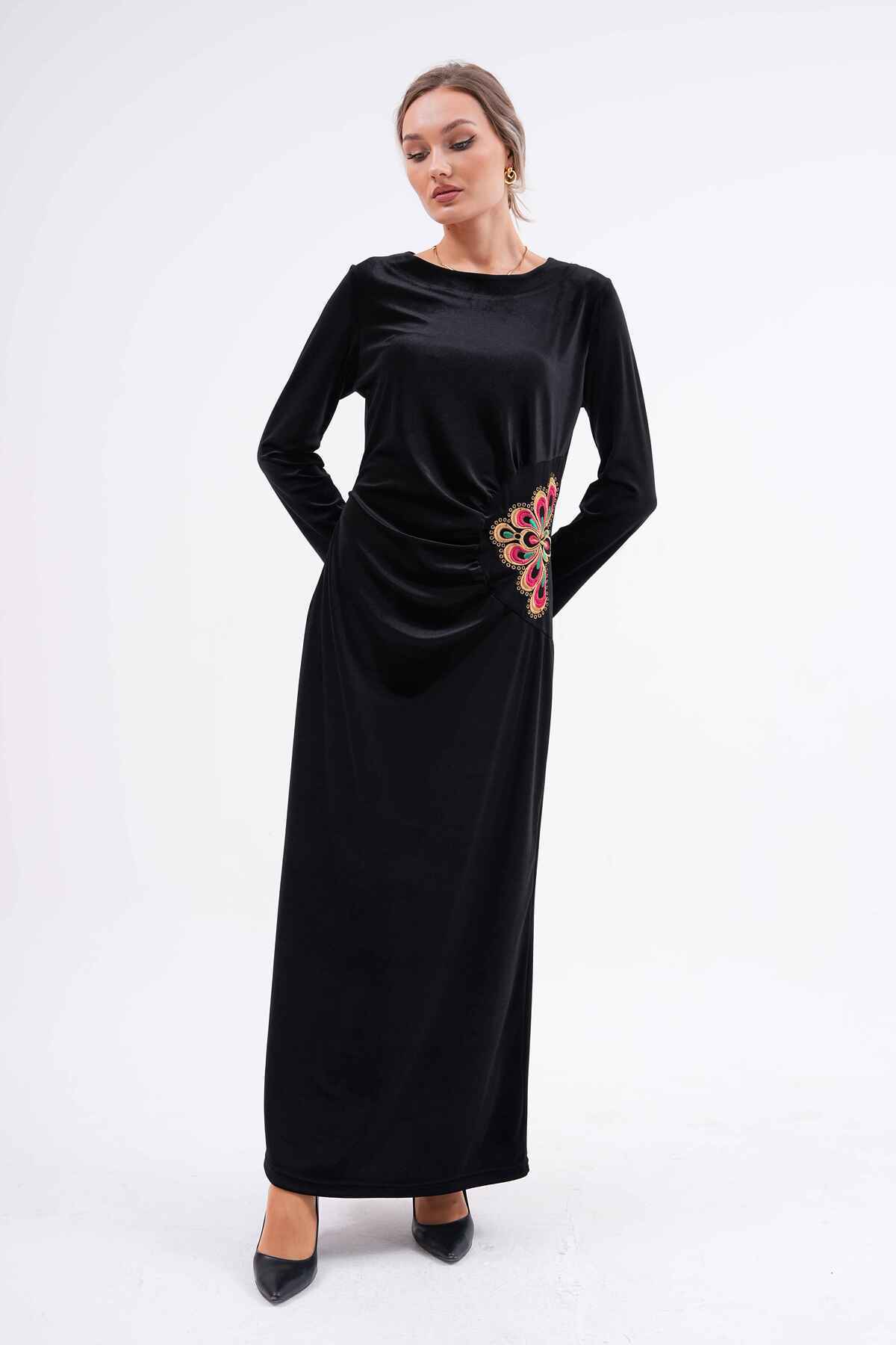 Kadın Nakışlı Uzun Kadife Elbise Kadın Nakışlı Uzun Kadife Elbise 1027 4