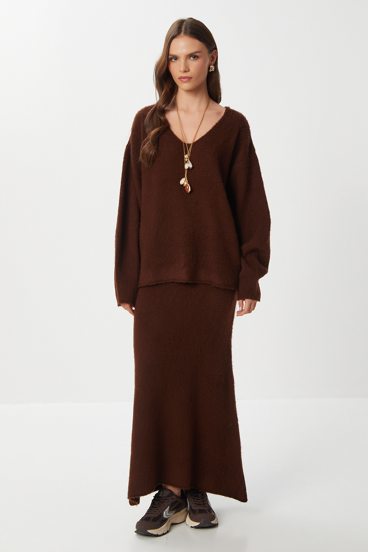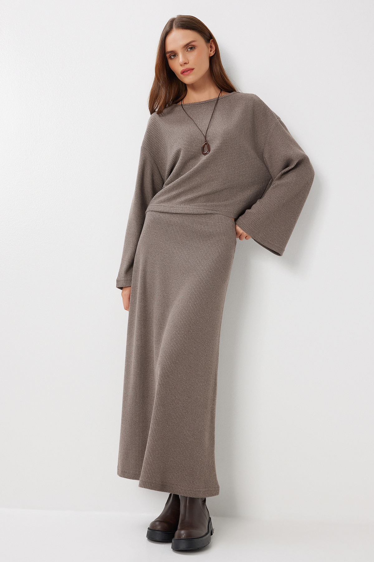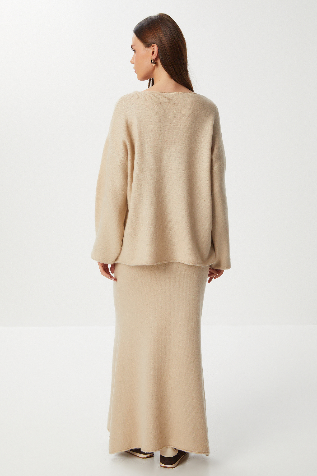 Yün Karışımlı Kazak Etek Triko Takım LKİ0039 BEJ Yün Karışımlı Kazak Etek Triko Takım LKİ0039 BEJ تک سایز