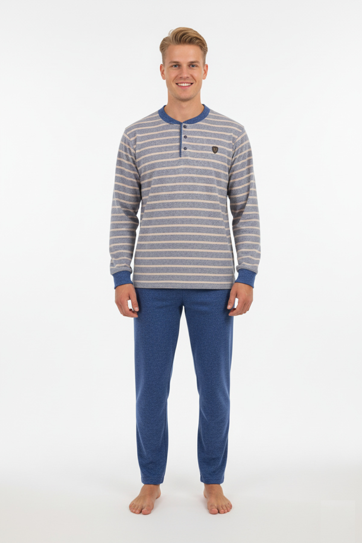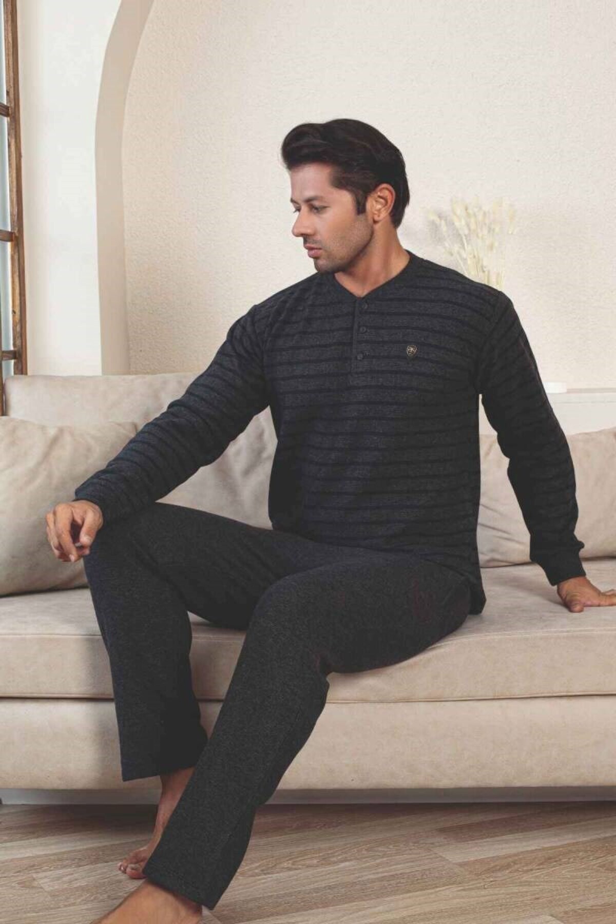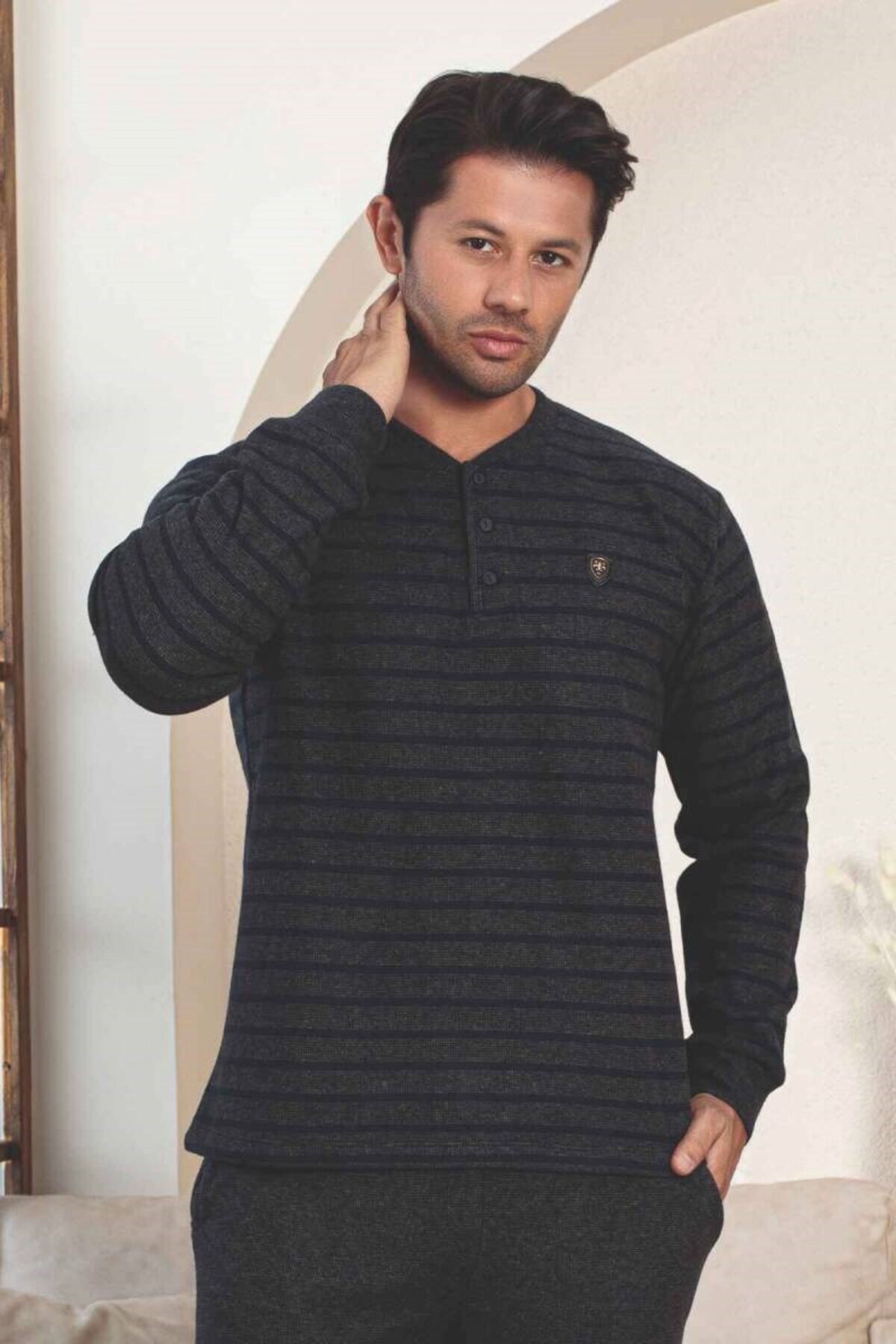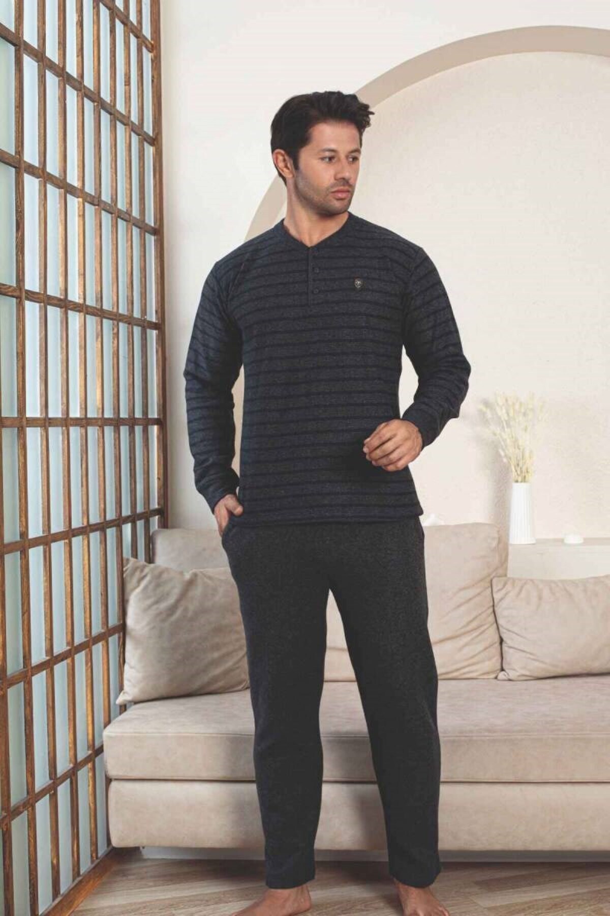 Erkek Gri Lacivert 3 Düğme Çizgili Kışlık Pamuklu Selanik Kumaş Uzun Manşetli Kol Cepli Pijama Takım Erkek Gri Lacivert 3 Düğme Çizgili Kışlık Pamuklu Selanik Kumaş Uzun Manşetli Kol Cepli Pijama Takım PRA-13079020-836174 XL