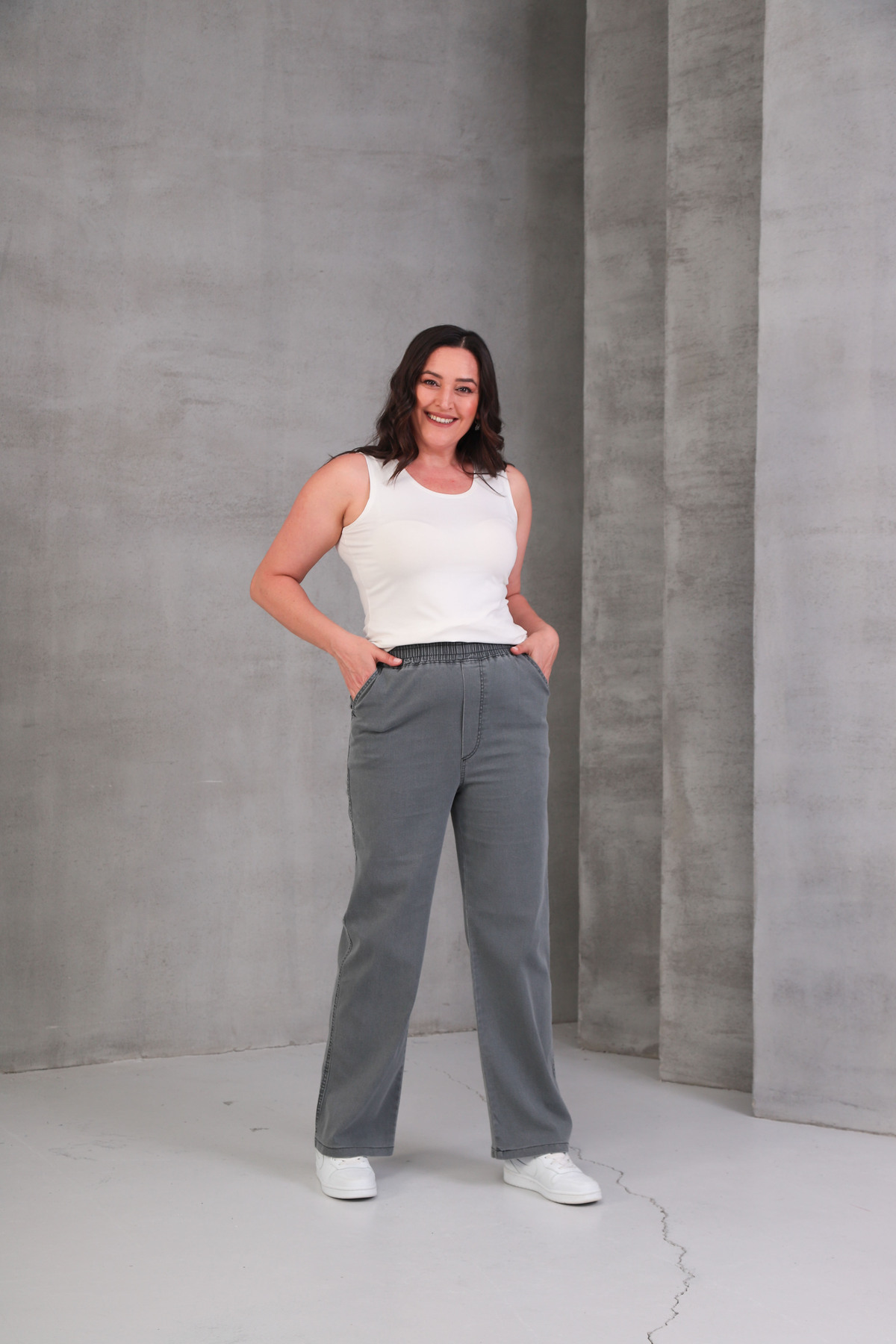Gri Kadın Kot Pantolon Beli Lastikli Yüksek Bel Likralı PLAZZO Büyük-Küçük Beden Jeans Gri Kadın Kot Pantolon Beli Lastikli Yüksek Bel Likralı PLAZZO Büyük-Küçük Beden Jeans 0006 6XL