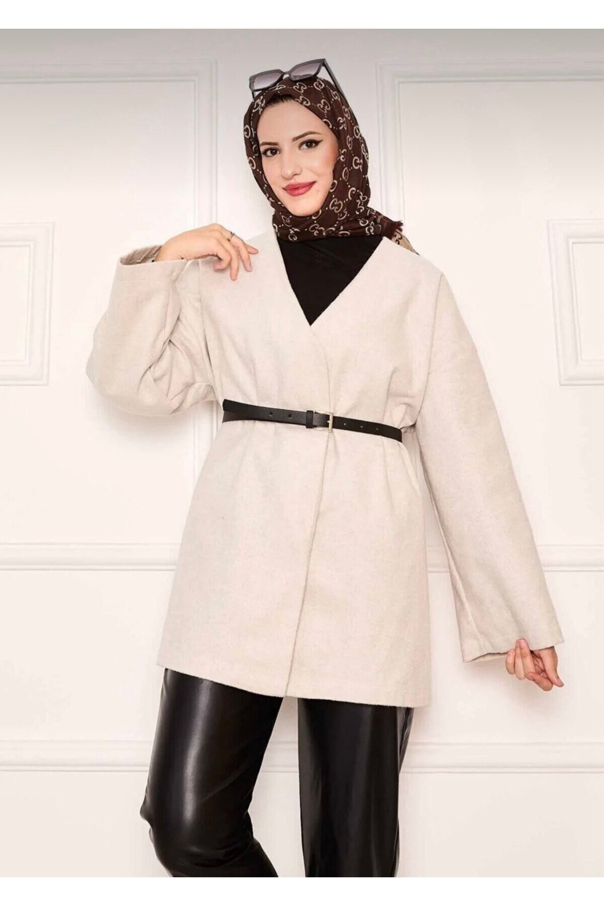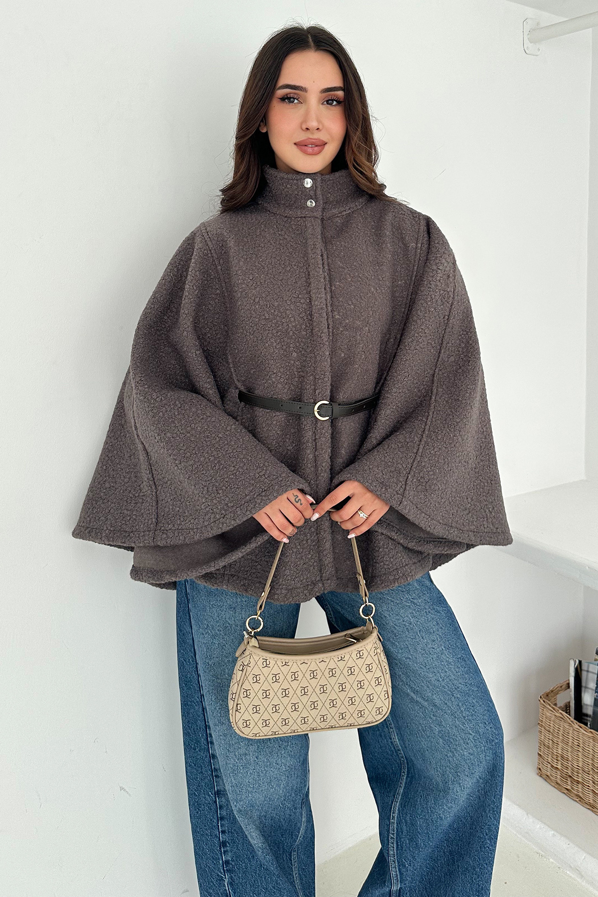 Kadın Siyah Gömlek Yaka Düğmeli Kemerli Oversize Kaşe Kumaş Pelerin Panço Ceket Kaban Kadın Siyah Gömlek Yaka Düğmeli Kemerli Oversize Kaşe Kumaş Pelerin Panço Ceket Kaban MTC00757 L